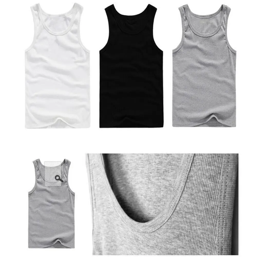 | 2019 Men Tank Tops High Quality Cotton Undershirt Bodybuilding Singlet Fitness Sleeveless Vest Men Tank Tops Solid Color Tank |
