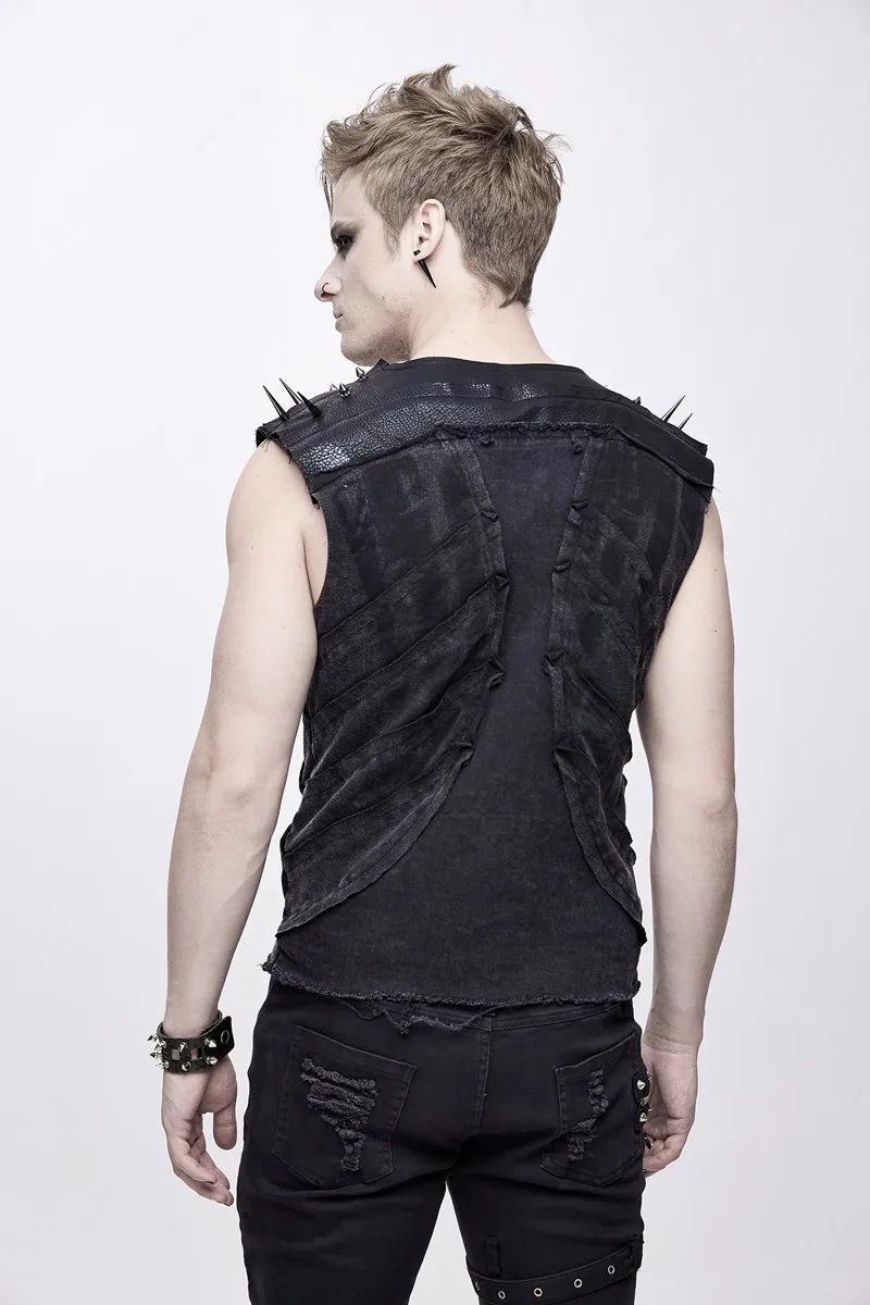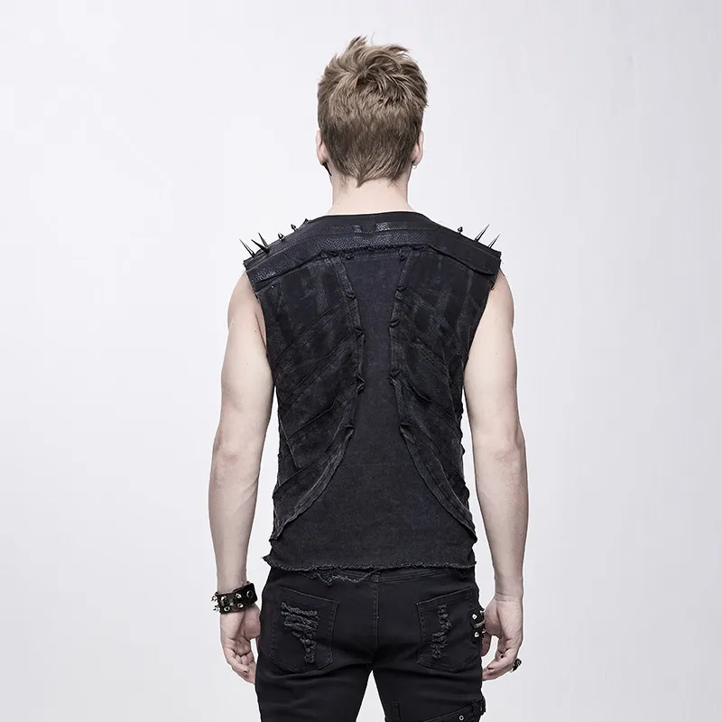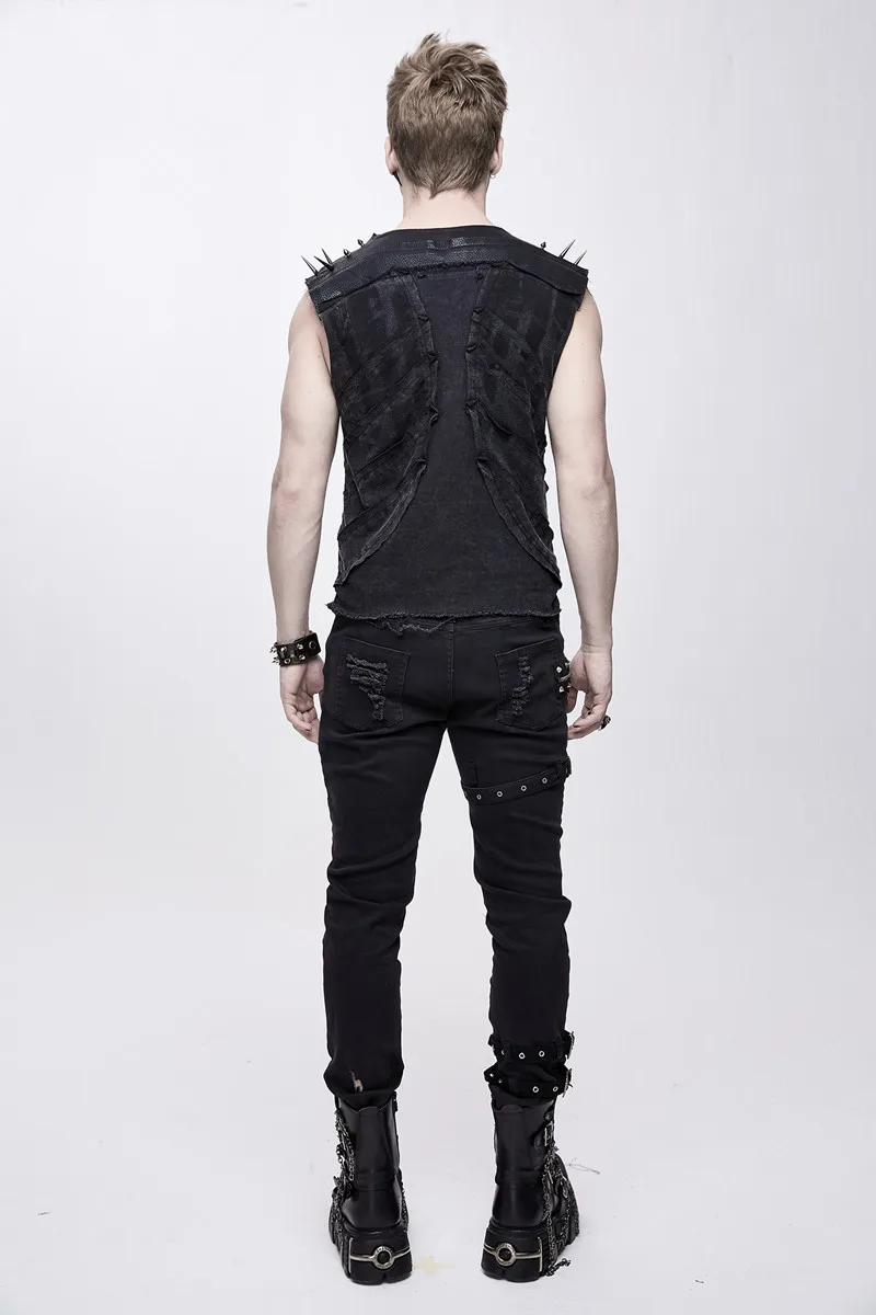 Devil Fashion Punk Rock Summer T Shirt Men Black V Neck Rivets Sleeveless Tops Men Clothing Performance Tees Tops