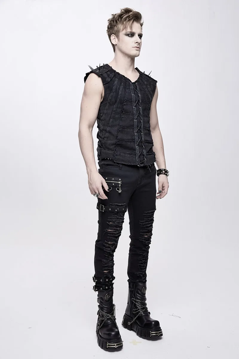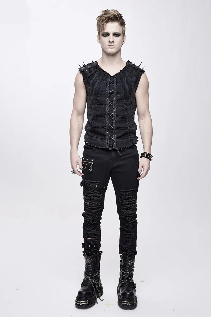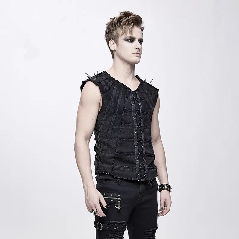| Devil Fashion Punk Rock Summer T Shirt Men Black V Neck Rivets Sleeveless Tops Men Clothing Performance Tees Tops |