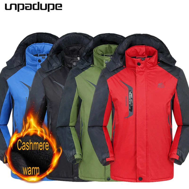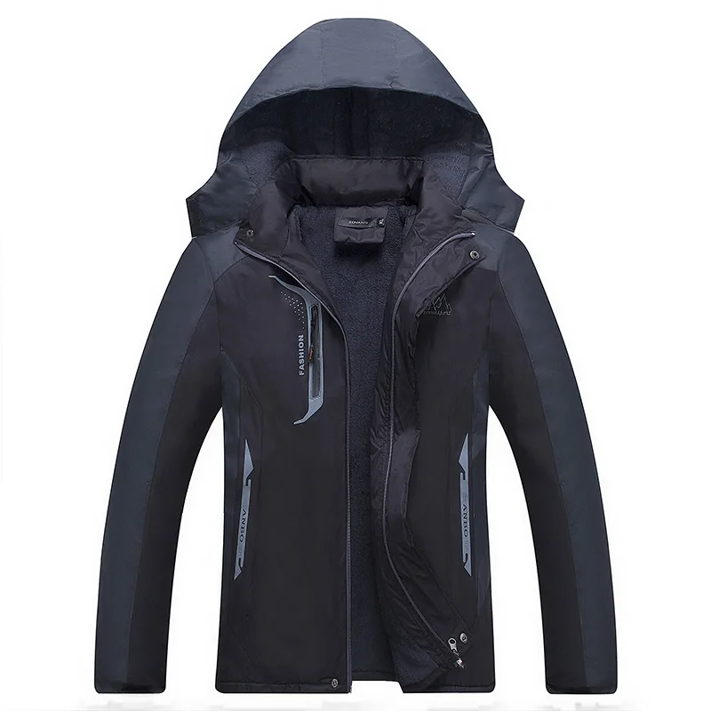 | 2019 jacket men Autumn Winter Outdoor camping Cashmere coat Mountaineering hooded jacket Waterproof warm Men's zip jacket 5XL |