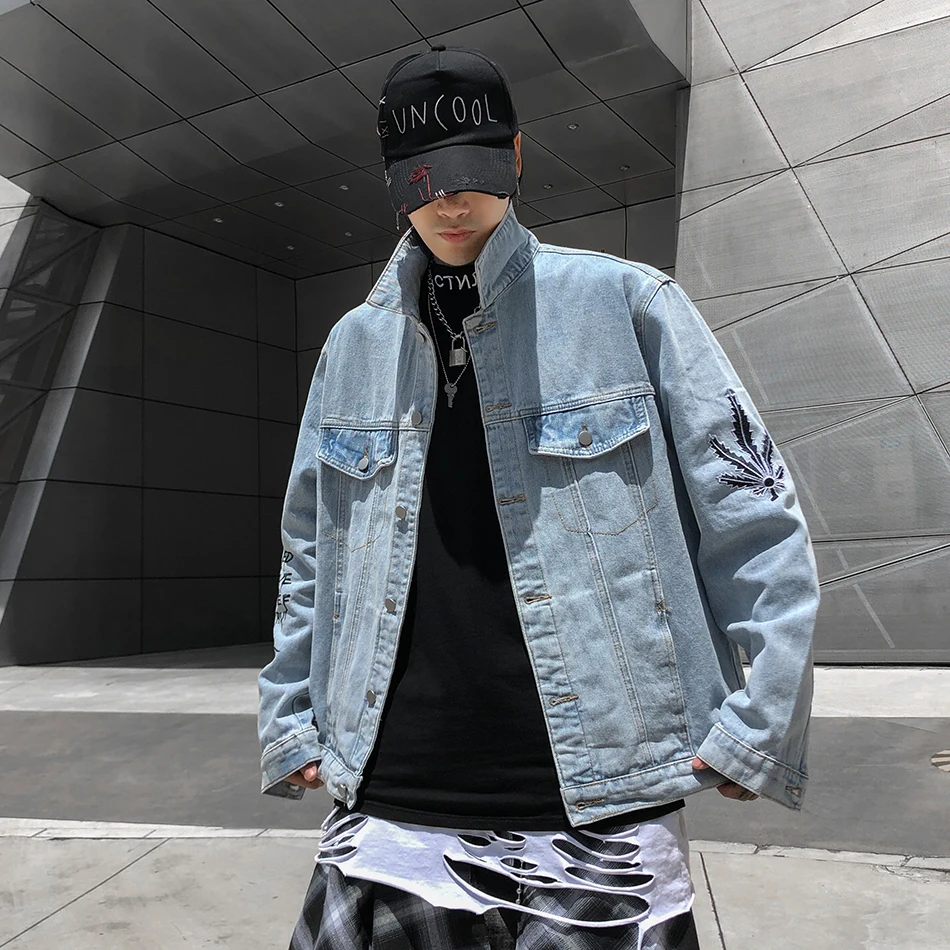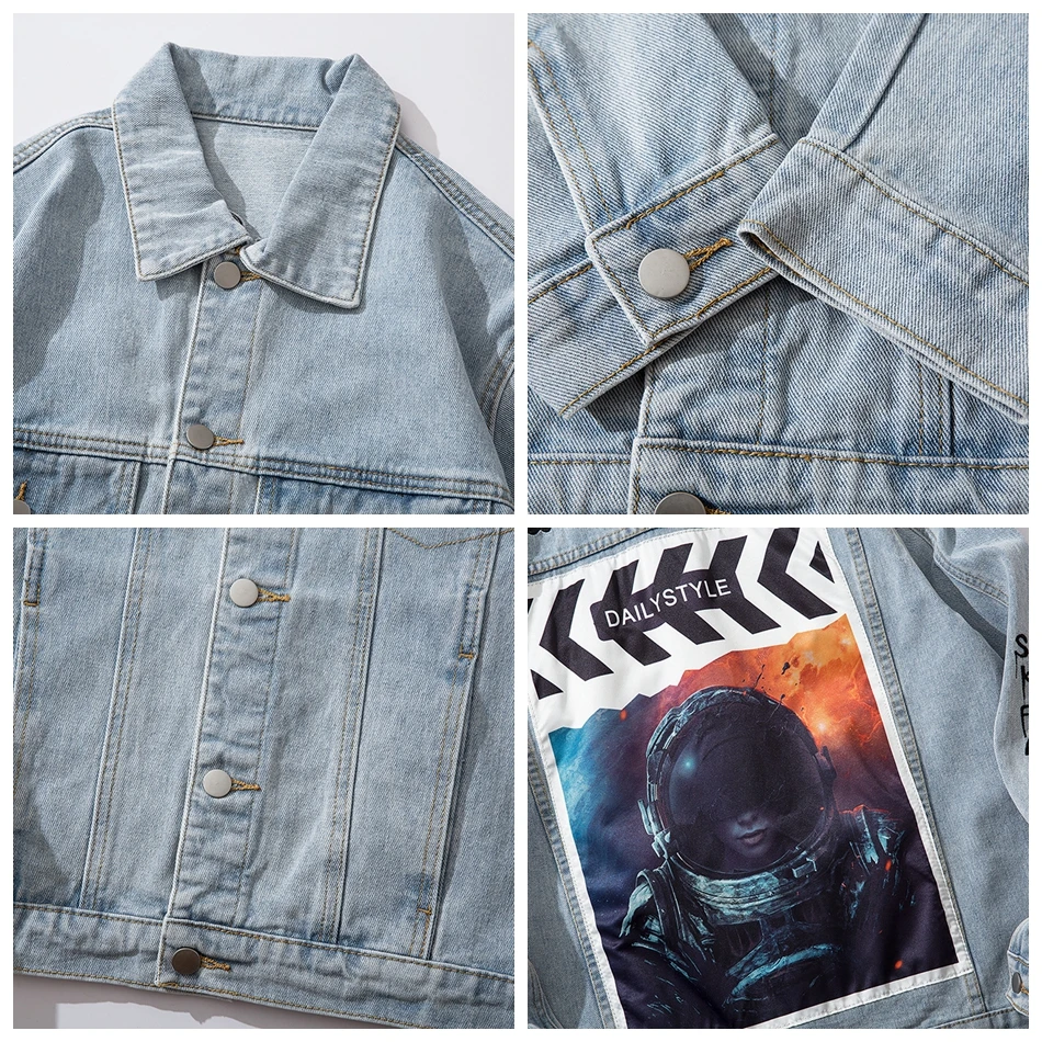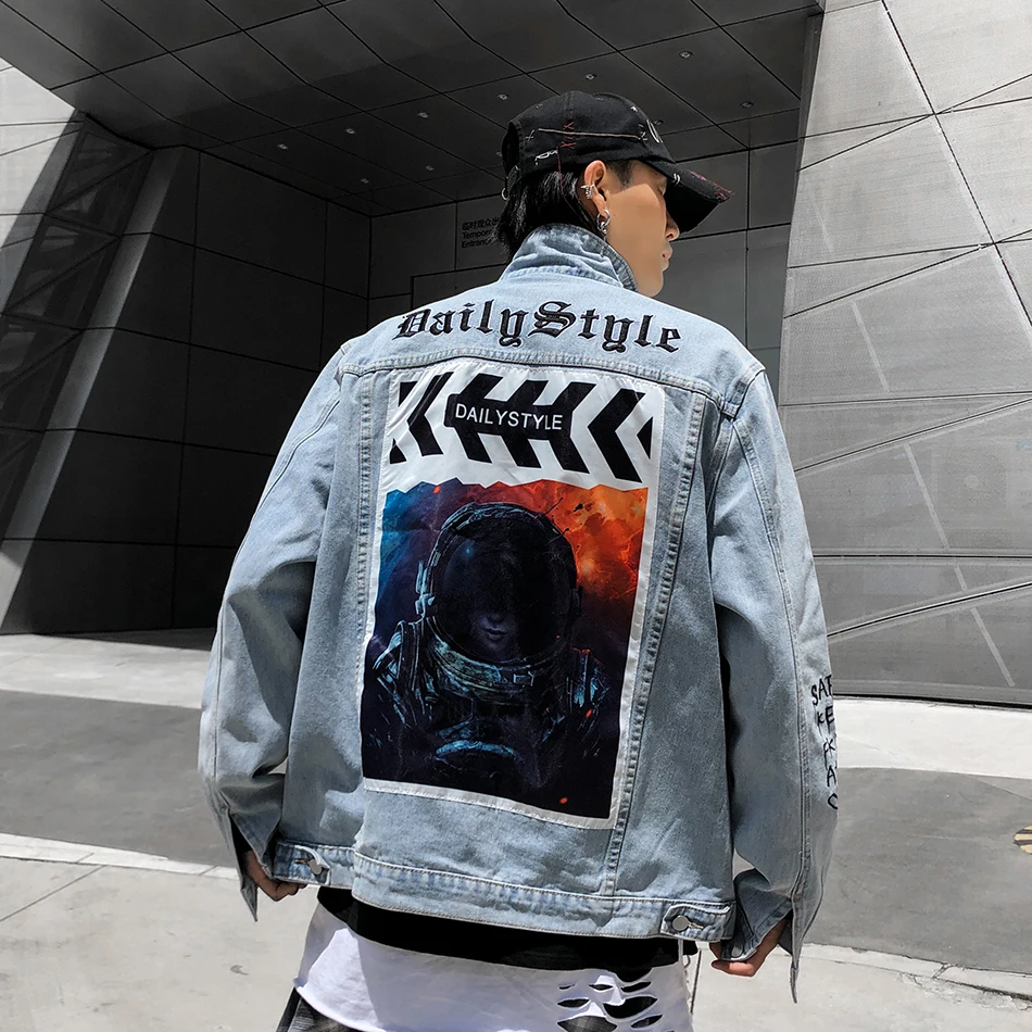 Harajuku Original Space Character Mens Jeans Jacket Hip Hop Blue Jaqueta Masculino Denim Jacket Chaqueta Hombre Bomber Jacket