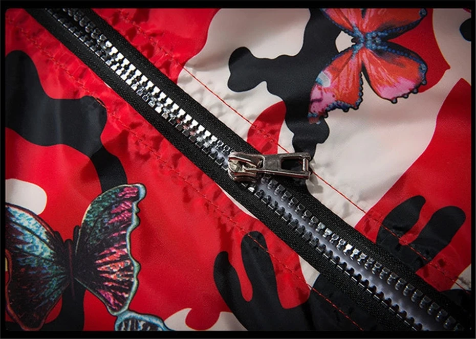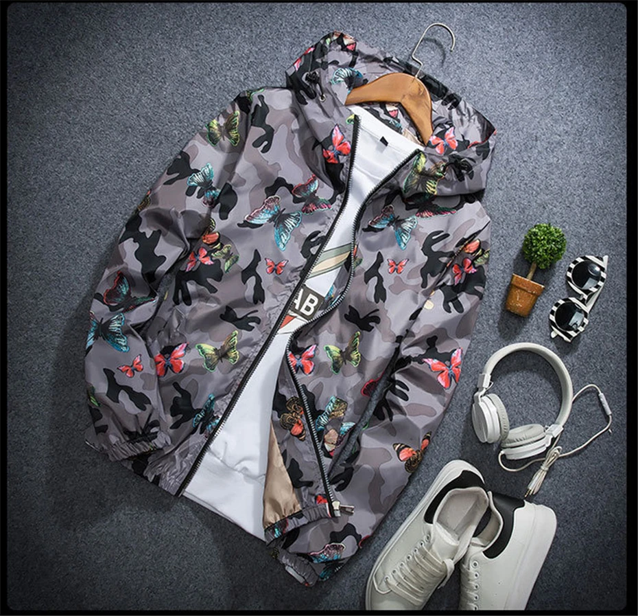 | Mens Casual Camouflage Hoodie Jacket 2019 New Autumn Butterfly Print Clothes Men's Hooded Windbreaker Coat Male Outwear |