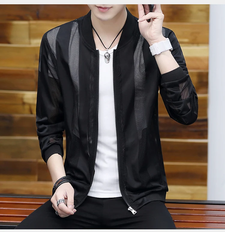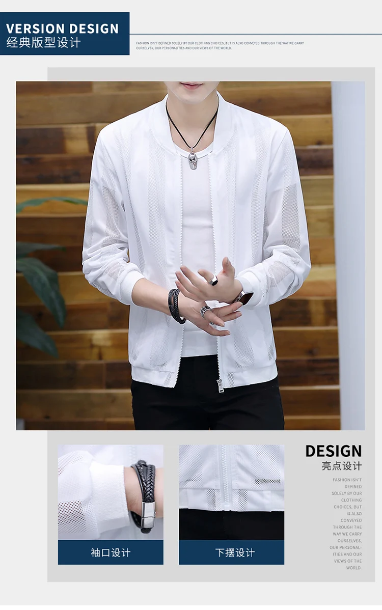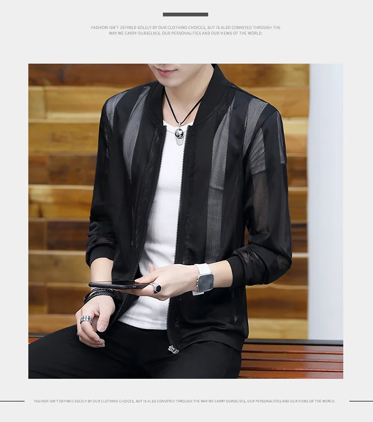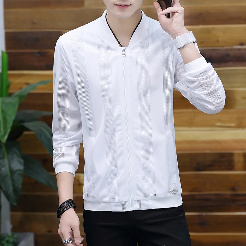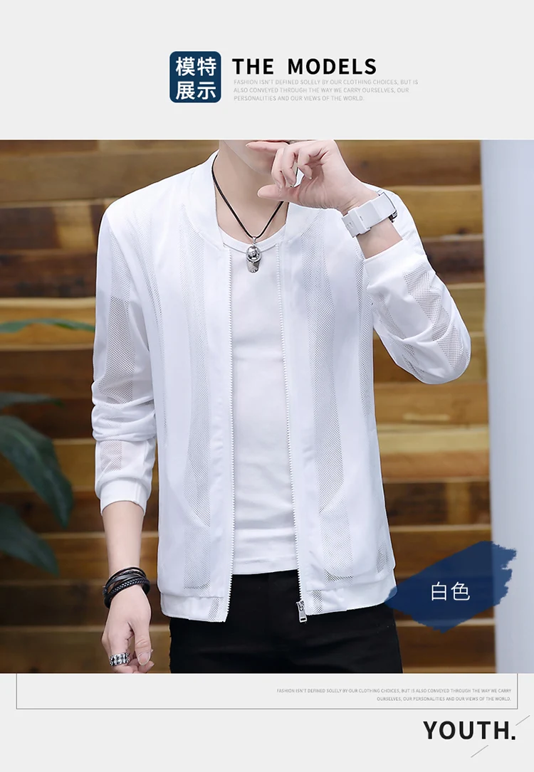 | Summer Quick Dry Jackets Men Windbreaker Striped Skin Coat Sunscreen Mens Outwear Ultralight Breathable Thin Transparent Jacket |