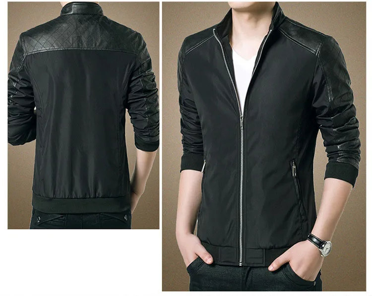 Best Price Comparison With DIMUSI Spring Autumn Men's PU Patchwork Jackets Casual Men's Thin Solid Jackets Male Slim Windbreaker jacket and Coats 5XL,YA701