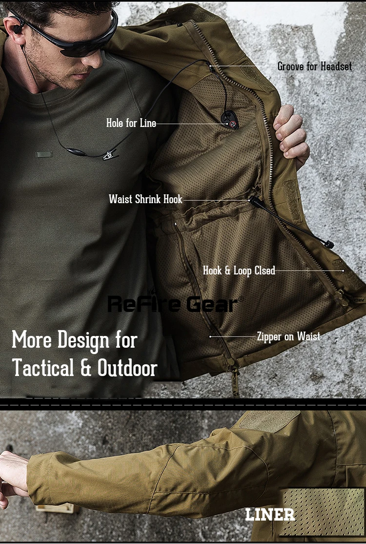 | ReFire Gear Army Field Tactical Jacket Men Waterproof Rip-stop Camouflage Military Jackets Autumn Multi-Pockets Windbreaker Coat |