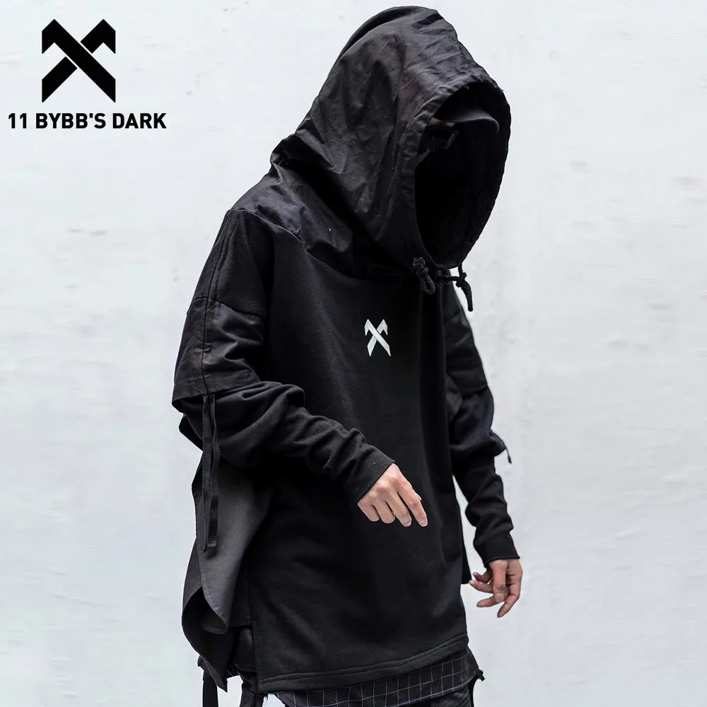 11 BYBB'S DARK Japanese Streetwear Man Hoodies Hip Hop Embroideried Pullover Patchwork Fake Two Darkwear Tops Techwear Hoodies