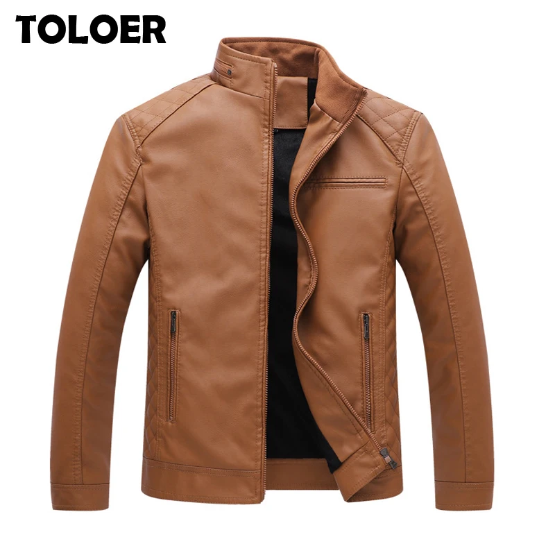 Best Price Comparison With 2020 Men Leather Jacket Winter Spring Casual Zipper PU Motorcycle Thicken Fleece Men Jackets Male Windproof Leather Jacket Coats
