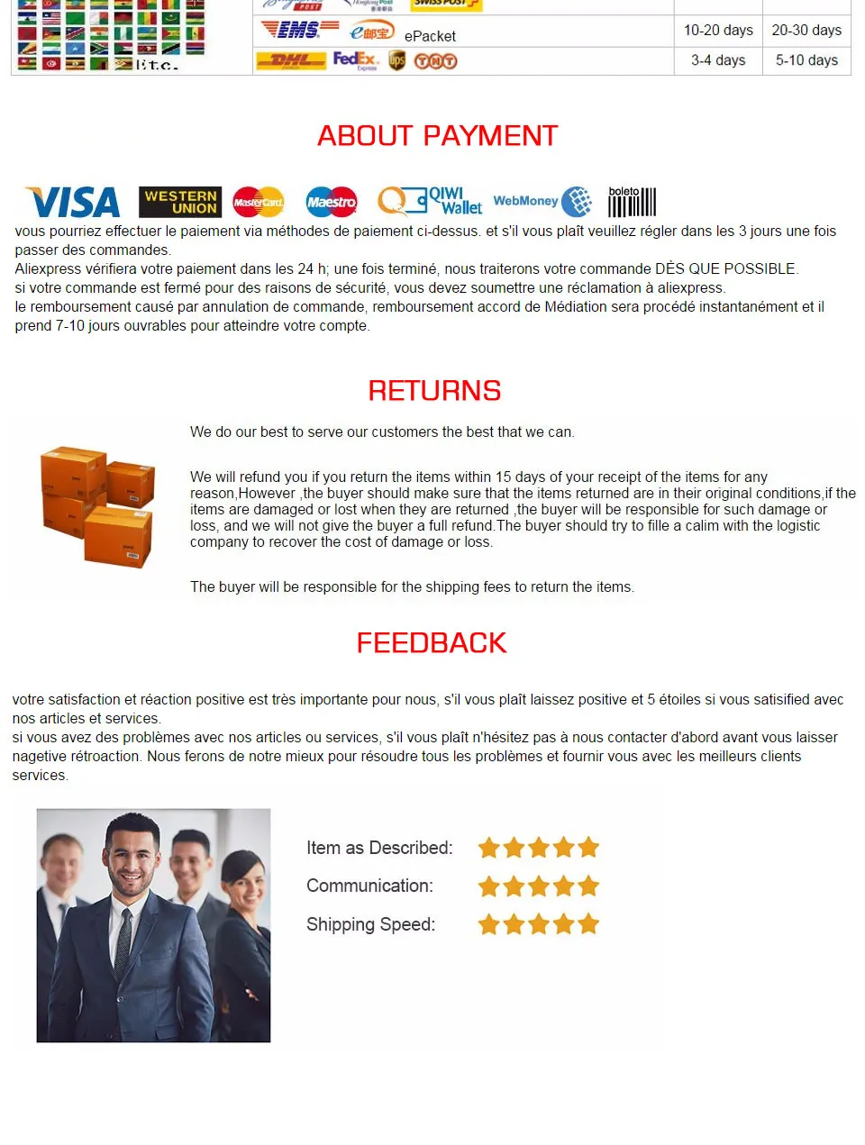Collect and add to cart, we will send the product first.We can send the goods directly to your customers, if you like, we will not leave any information about usQuestion 1: how many orders can you process every day?We can process 10000 orders a day. We have enough people.Q2: do you run out of stock on some products?We have our own factory. The supply is very good. Please don't worryQuestion 3: what should you do when the goods arrive damaged or even fail to reach the buyer?We will redeliver or refund the payment to you according to the actual situation.Question 4: how fast can you process orders?All shipping orders will be processed within 24 hours