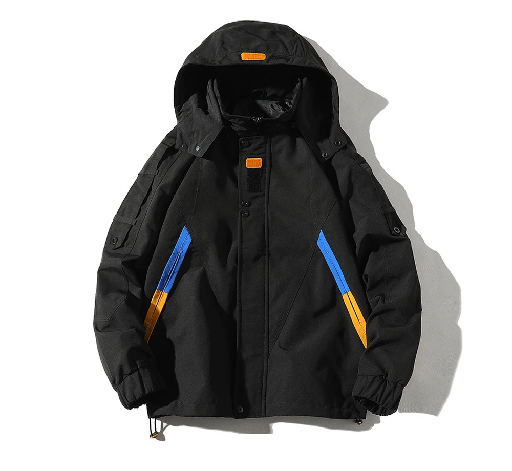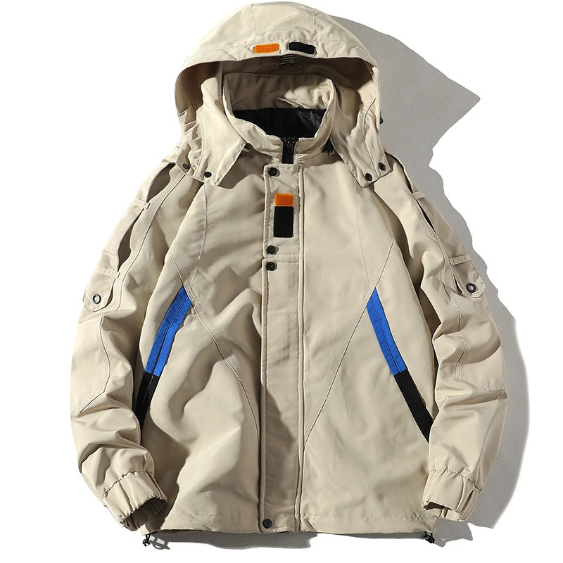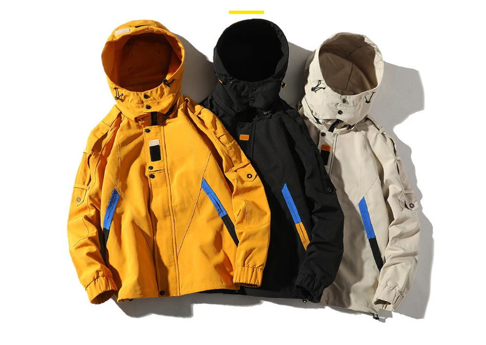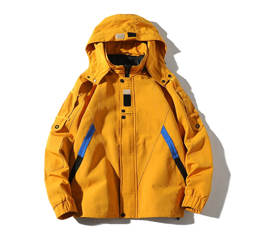 FGKKS Brand Men Jackets Waterproof Solid Color Men's Fashion Big pocket Jacket Coats Embroidered Letters Hooded Jackets Male