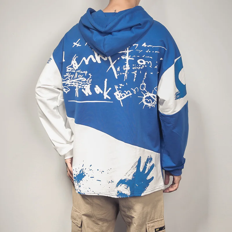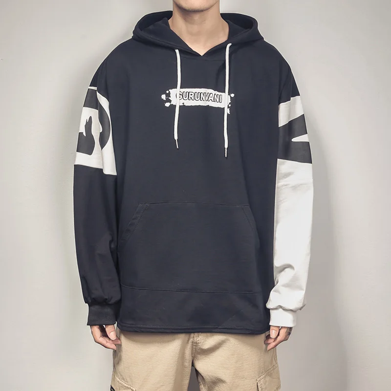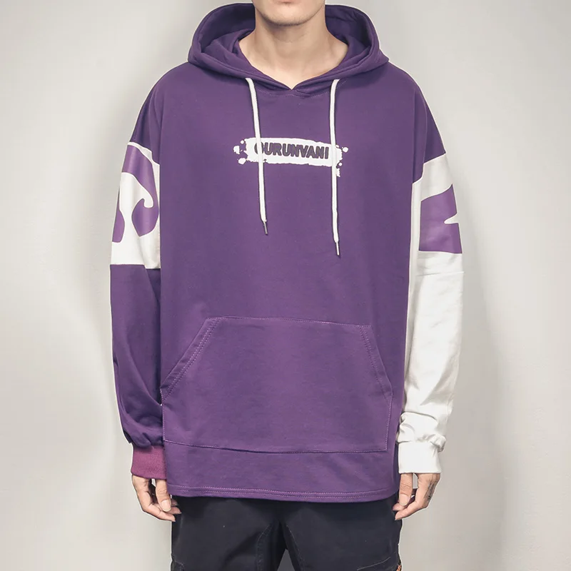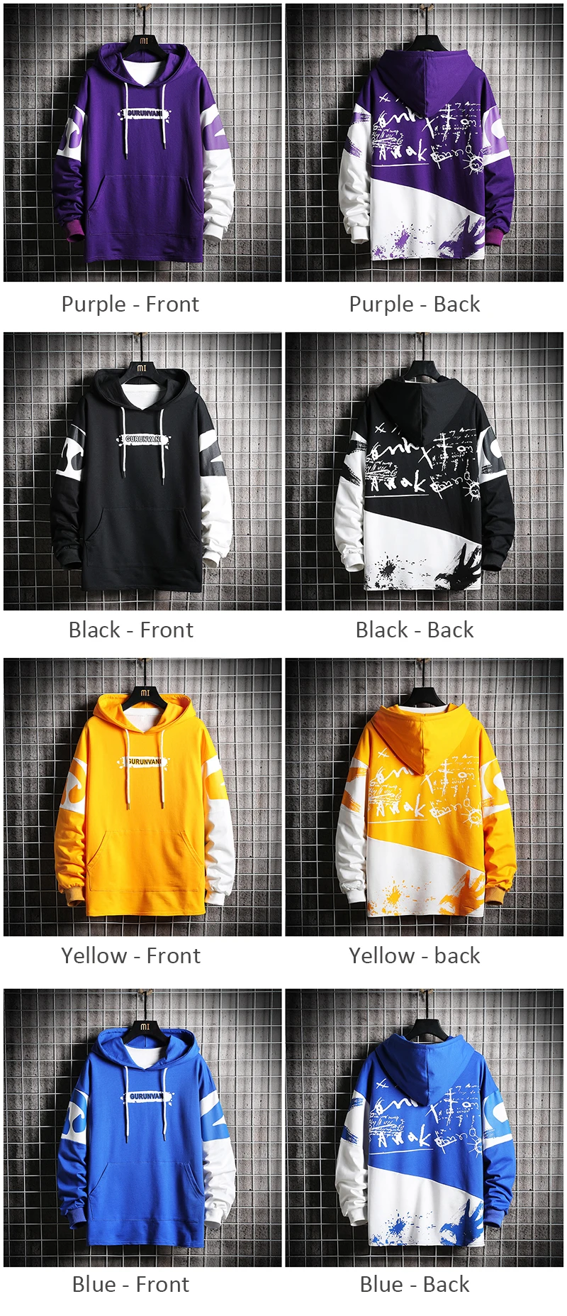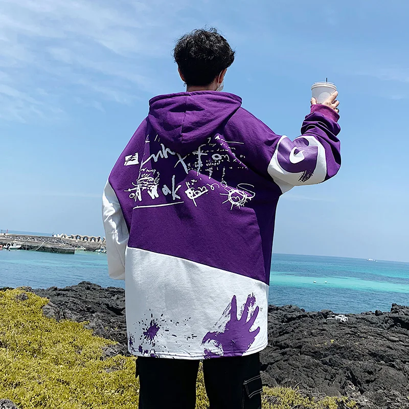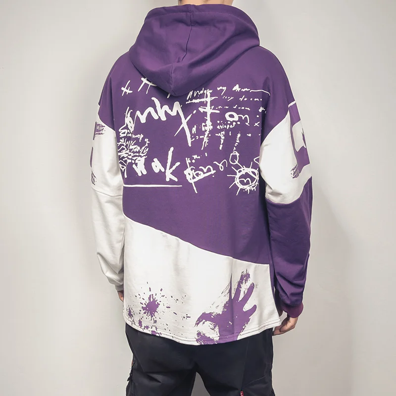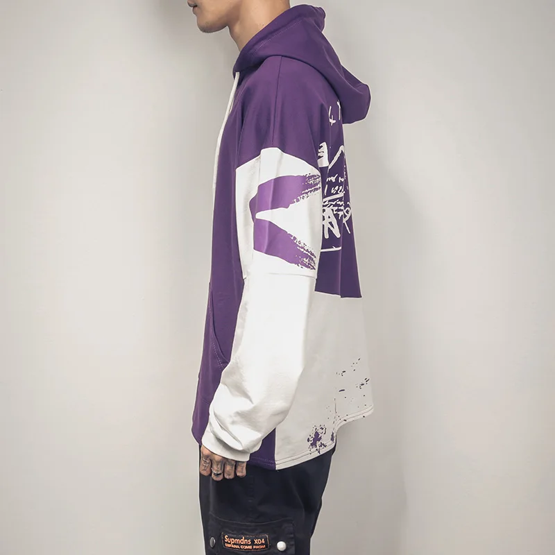 | SingleRoad Men's Hoodies Oversized Patchwork Print Harajuku Japanese Streetwear Hip Hop Sweatshirts Purple Hoodie Men Clothing |