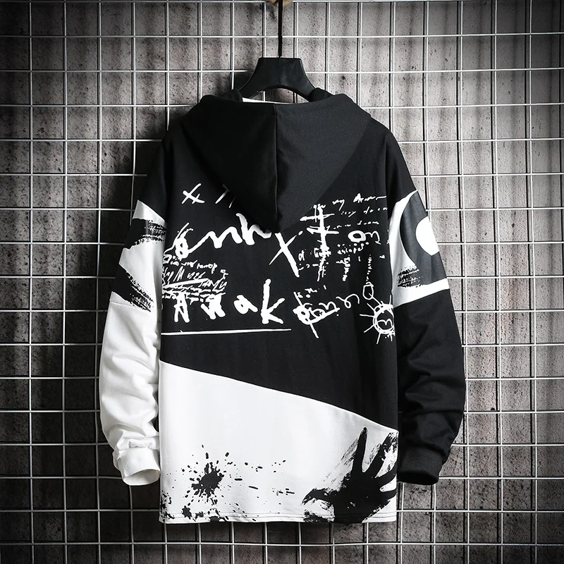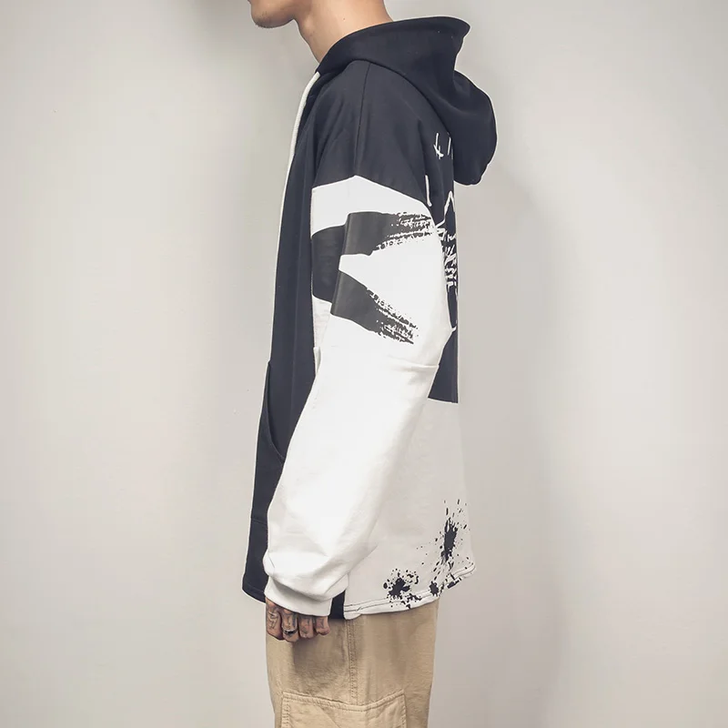 Mens Hoodies Sweatshirt 2019 Streetwear Patchwork Hoody Pullover Black White Hoodie Men Winter Fleece Sweatshirts Clothing