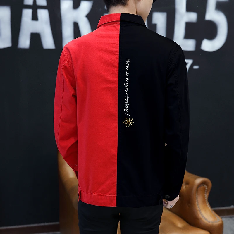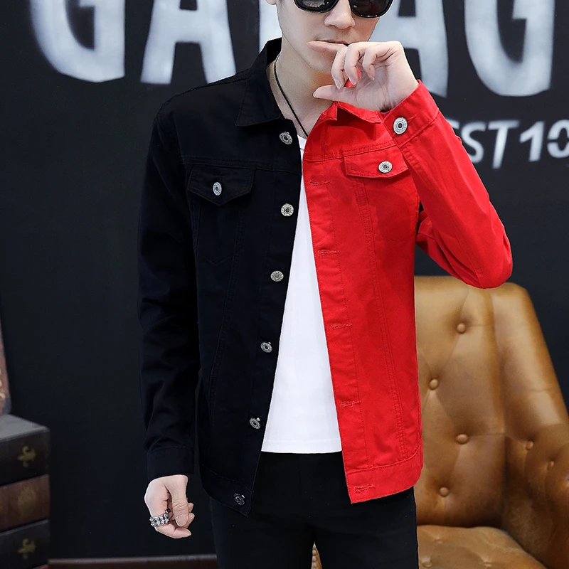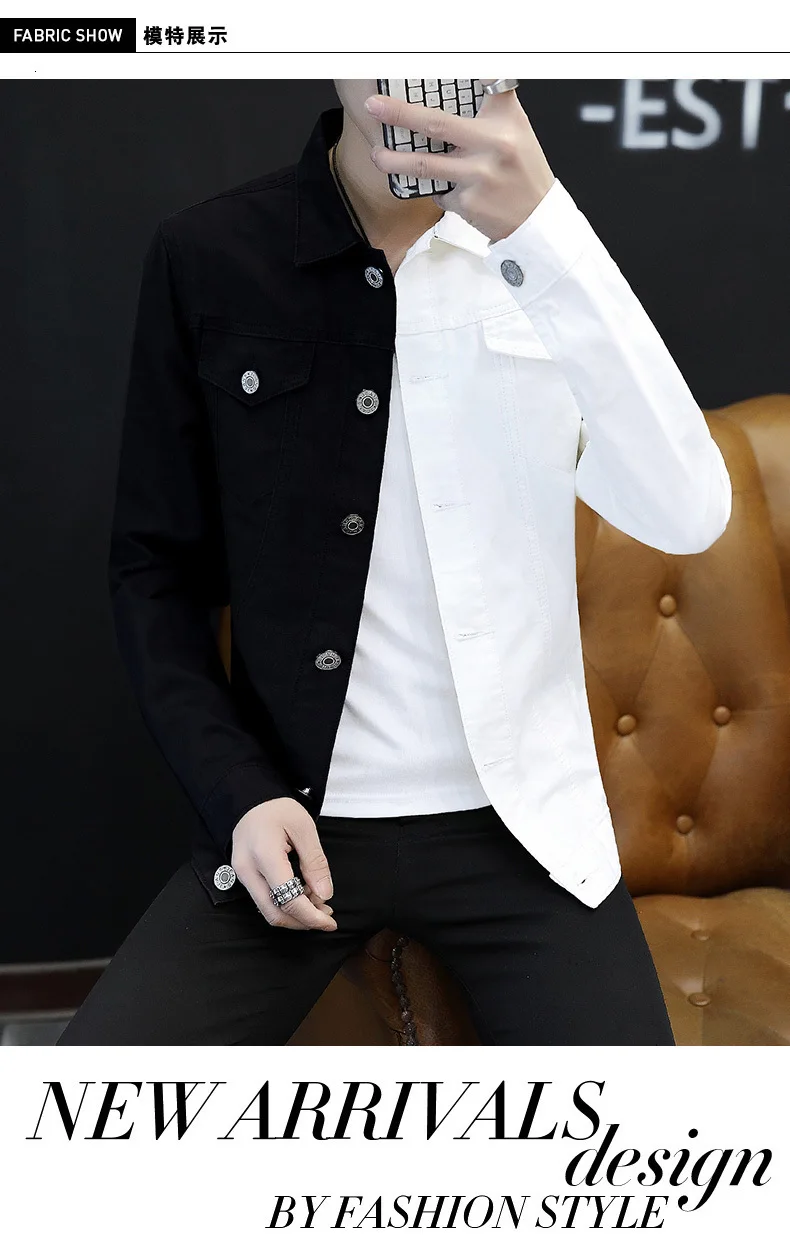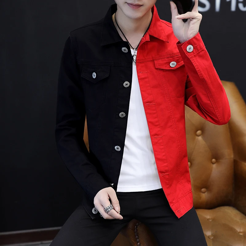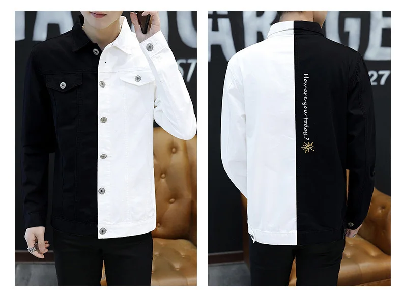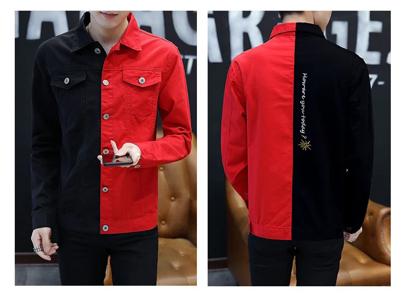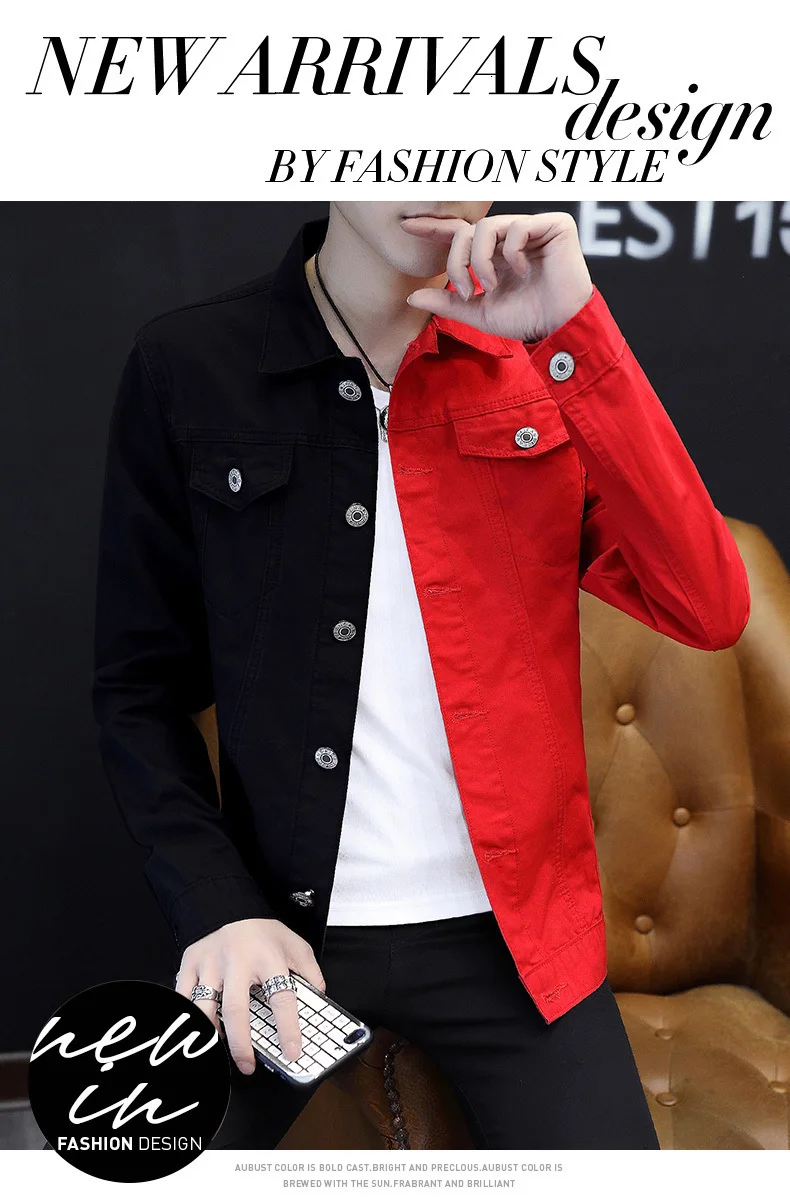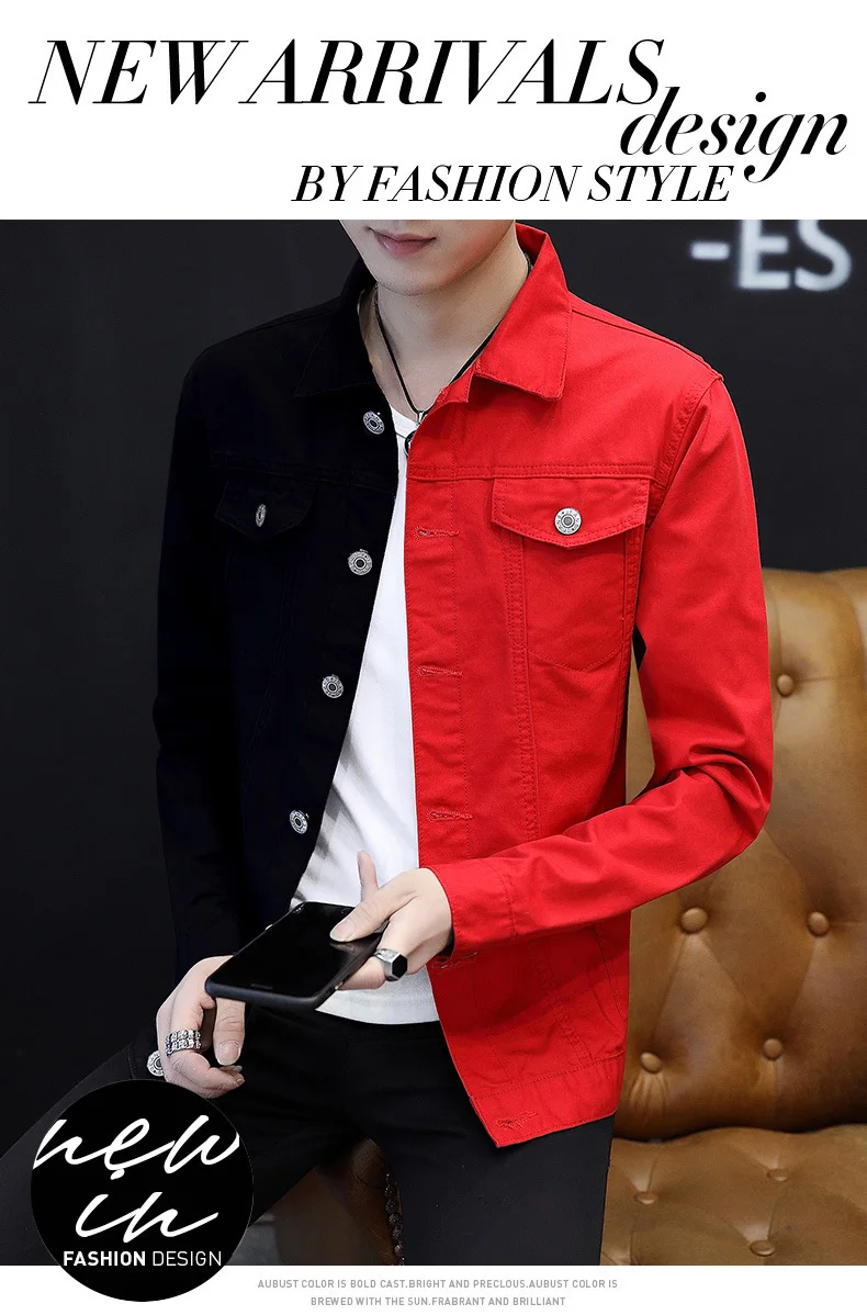 | #3411 Casual Slim Denim Jacket For Men 2019 White And White Red Jeans Jacket Homme Letters Embroided Streetwear Denim Coat Man |