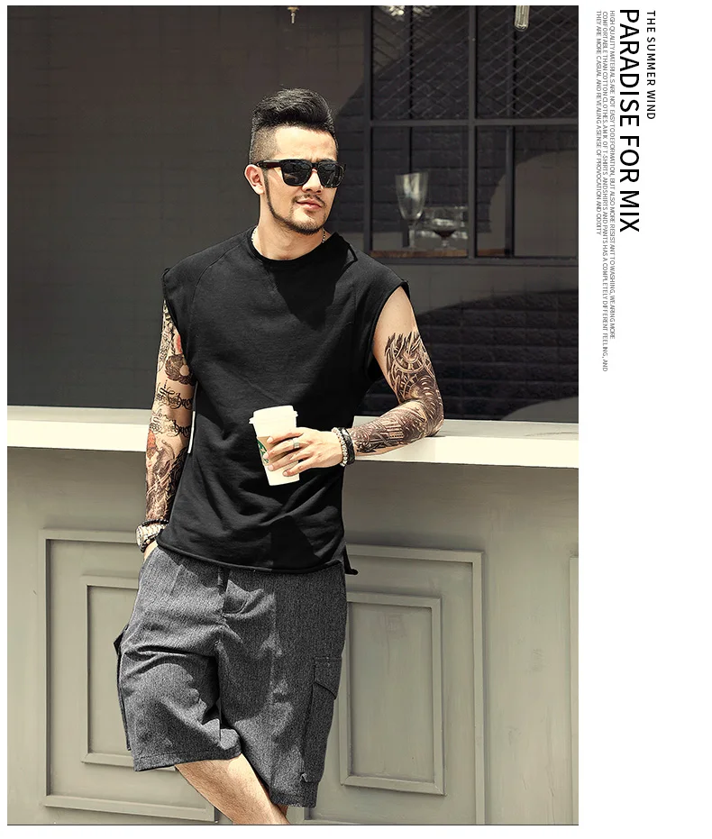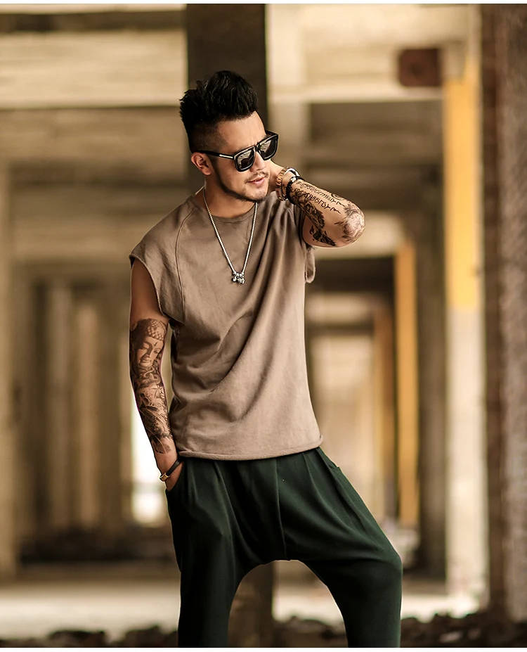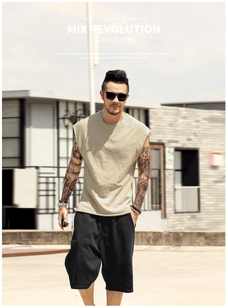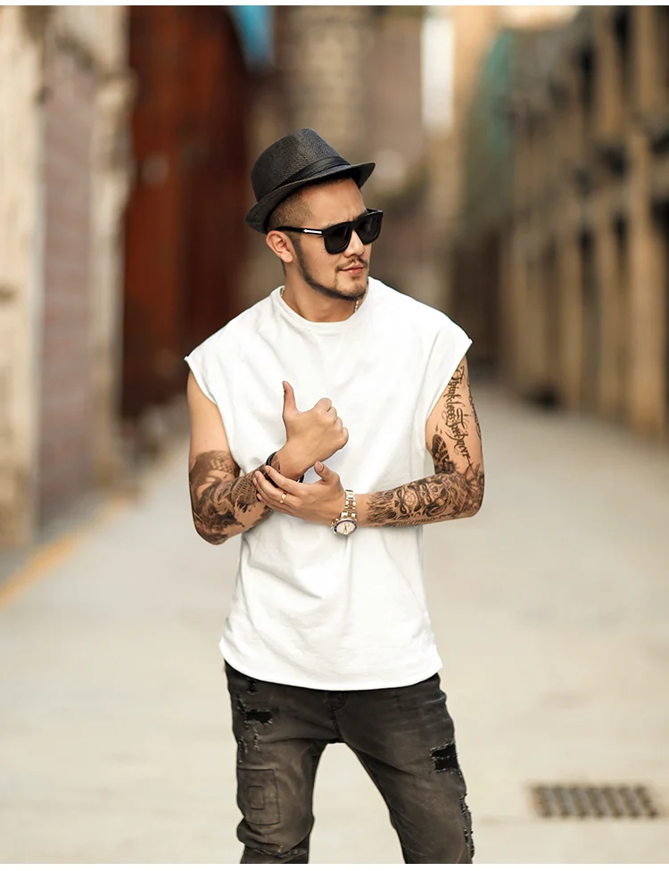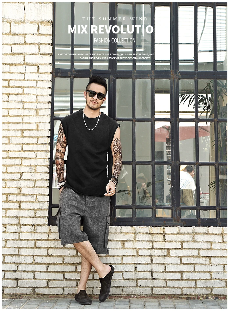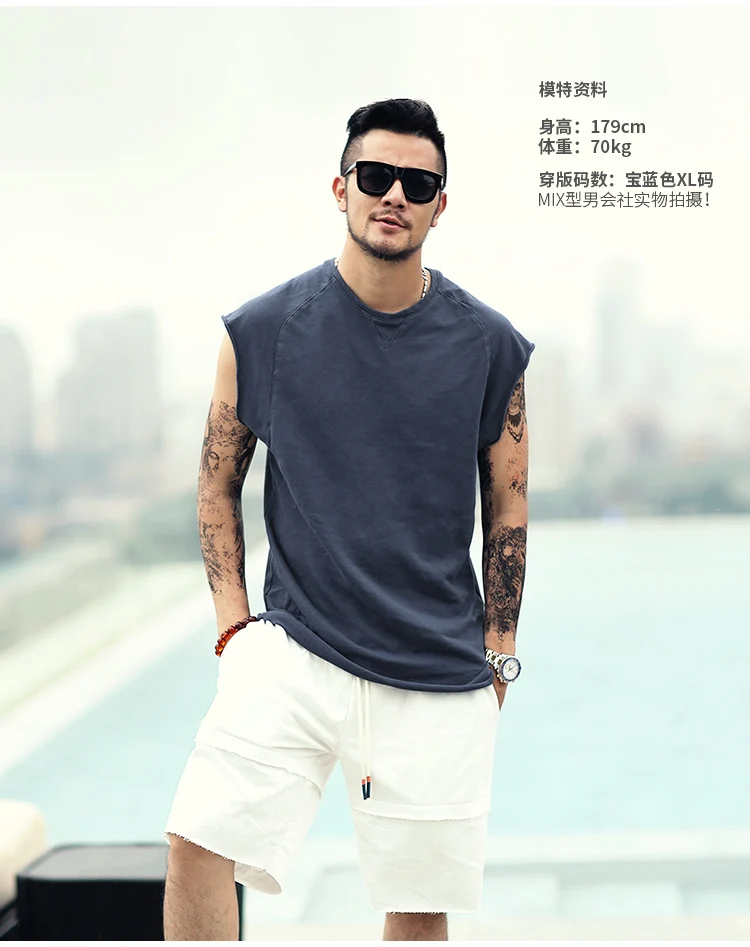men's sleeveless knitwear sleeveless undershirt wide shoulder vest bodybuilding tank top men cotton summer new T4364