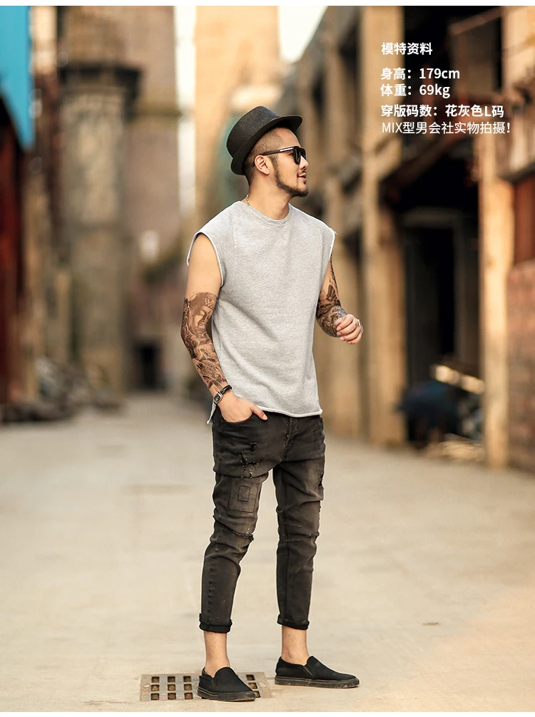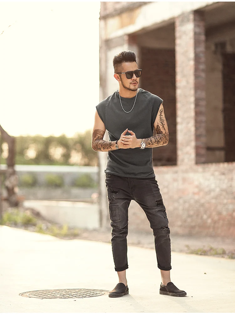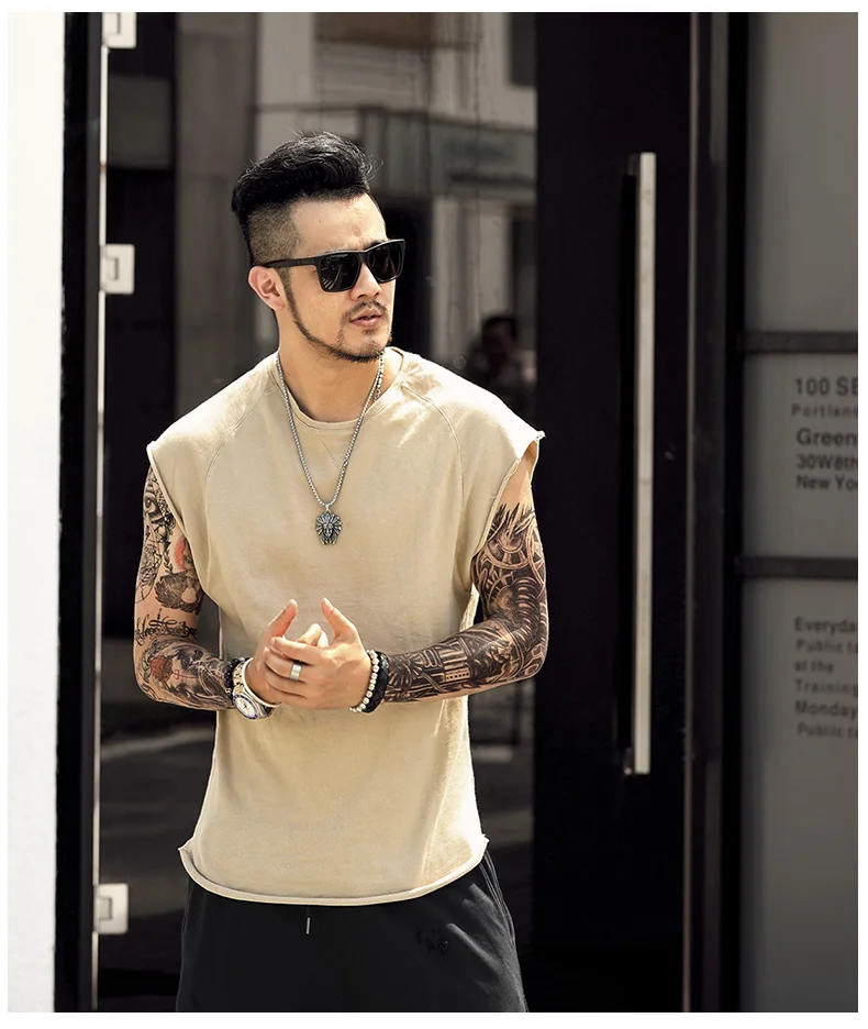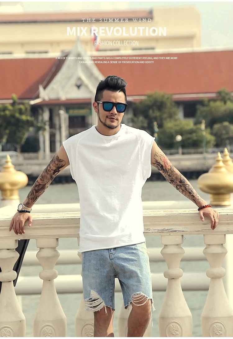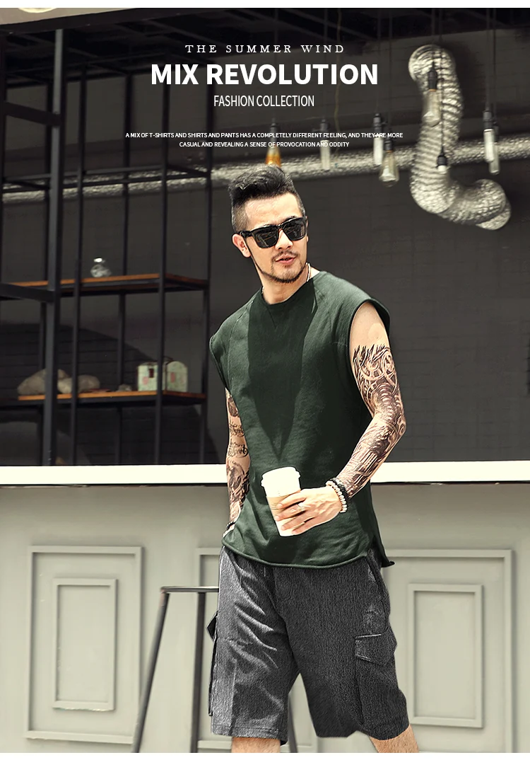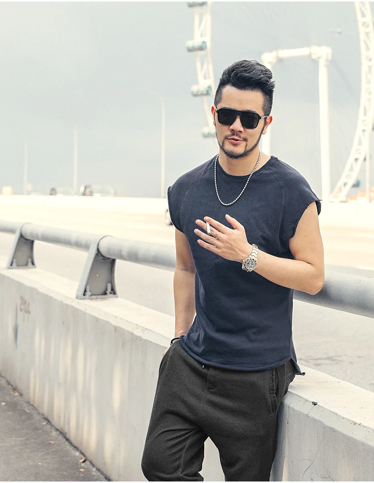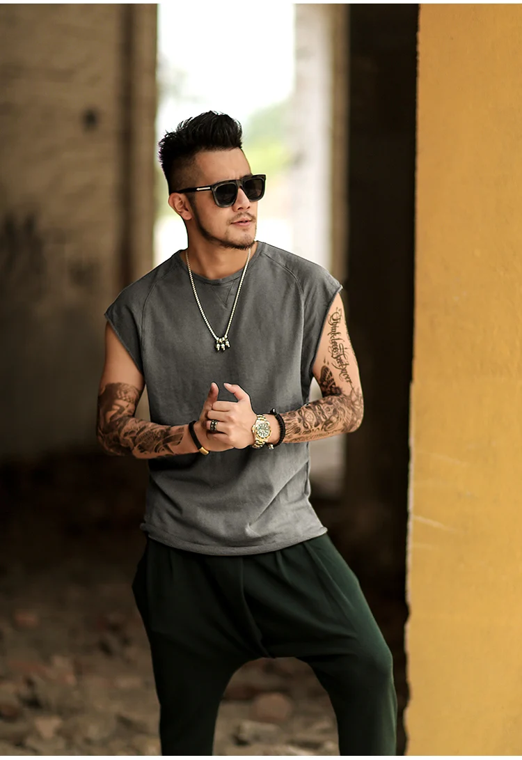 | men's sleeveless knitwear sleeveless undershirt wide shoulder vest bodybuilding tank top men cotton summer new T4364 |