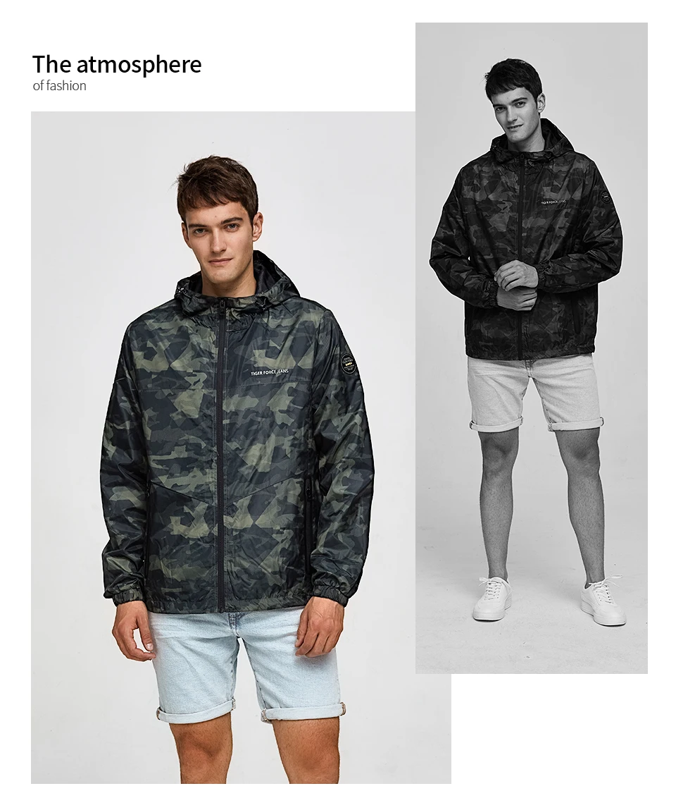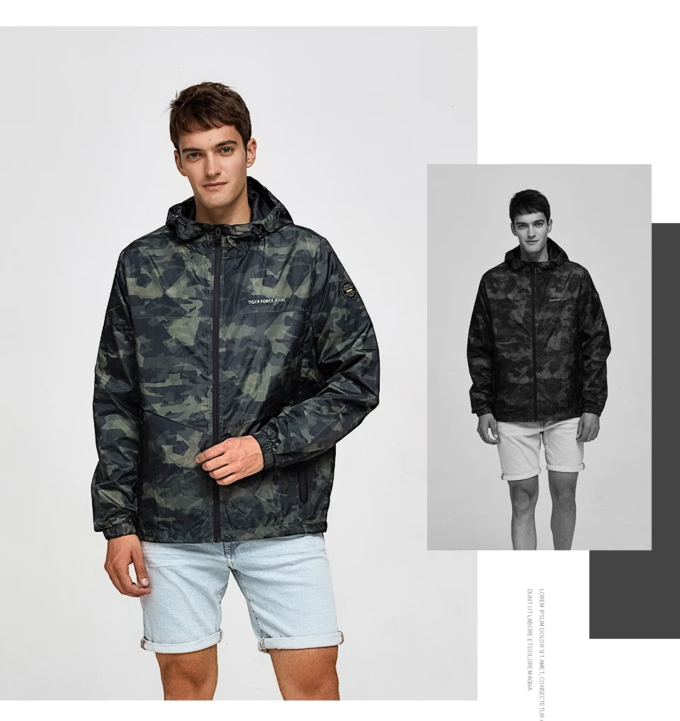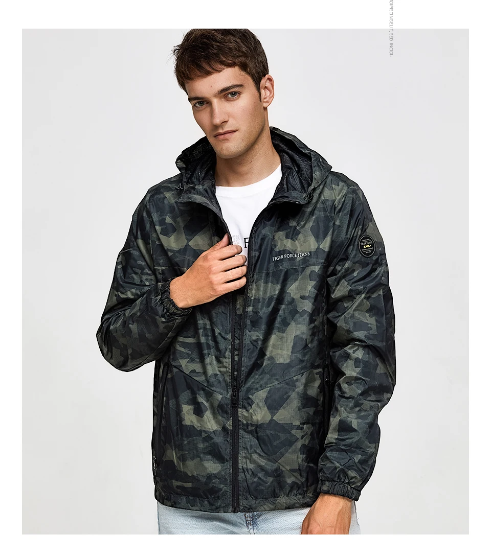TIGER FORCE Spring Men Casual Jacket Hooded Camouflage Jacket with Print Men's Windbreaker Coat Male Army Camo Outwear