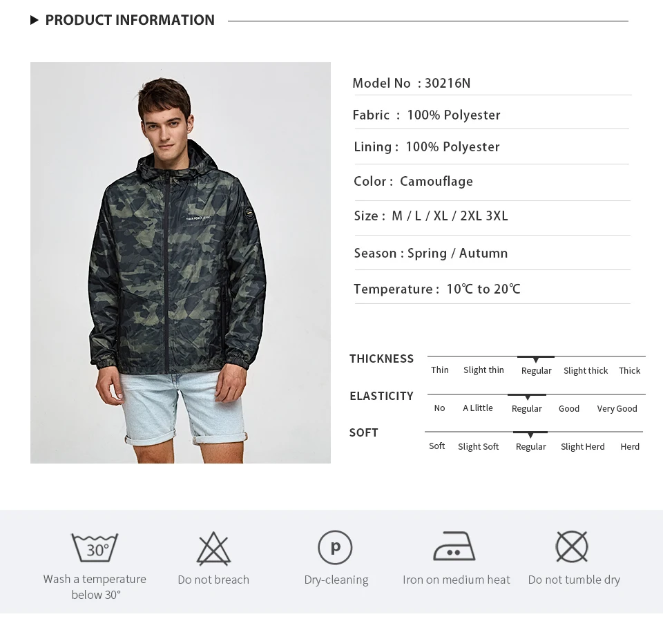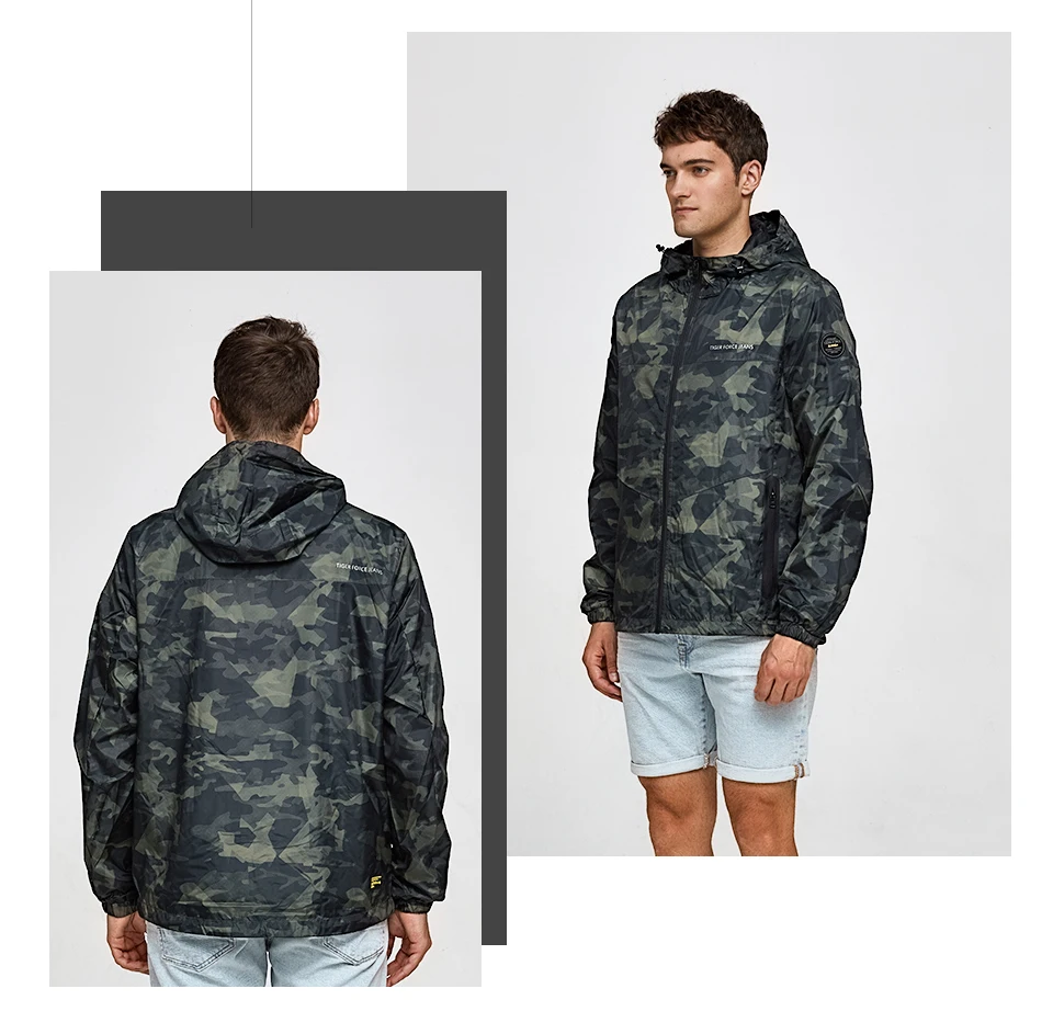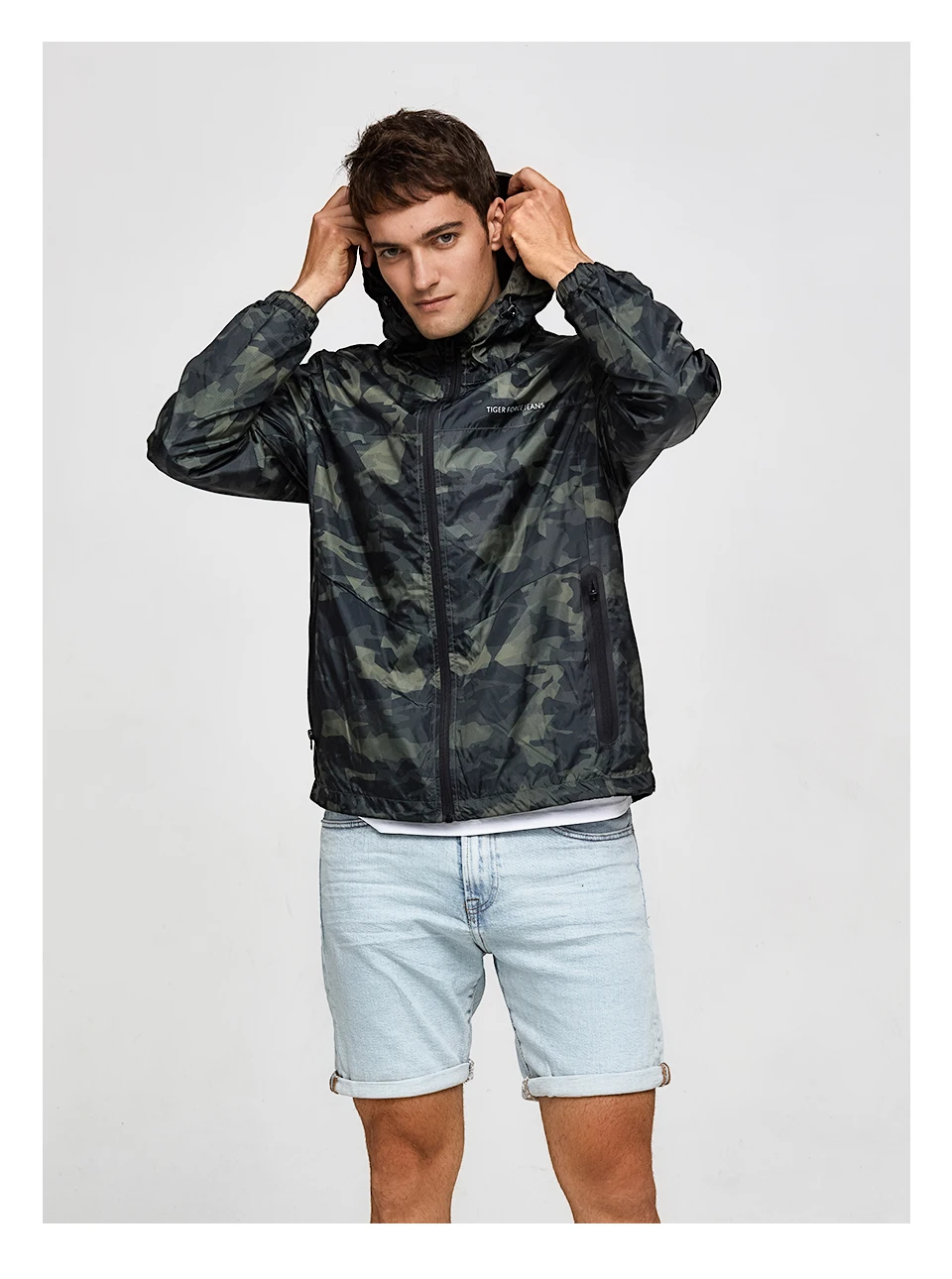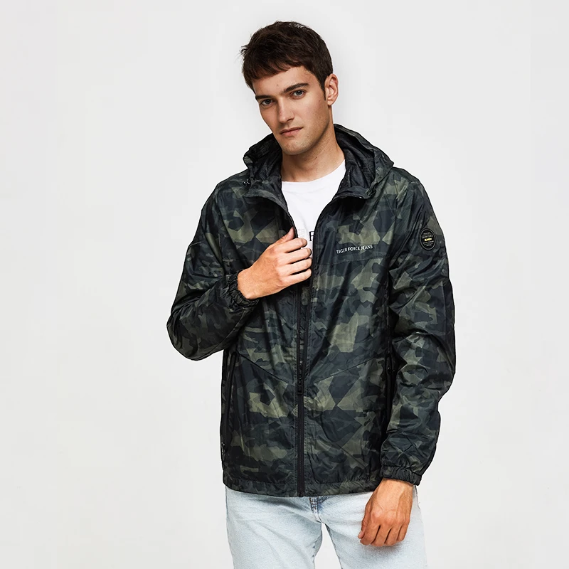 TIGER FORCE Spring Men Casual Jacket Hooded Camouflage Jacket with Print Men's Windbreaker Coat Male Army Camo Outwear