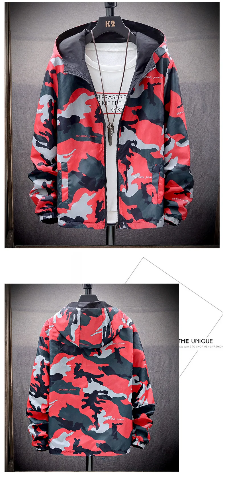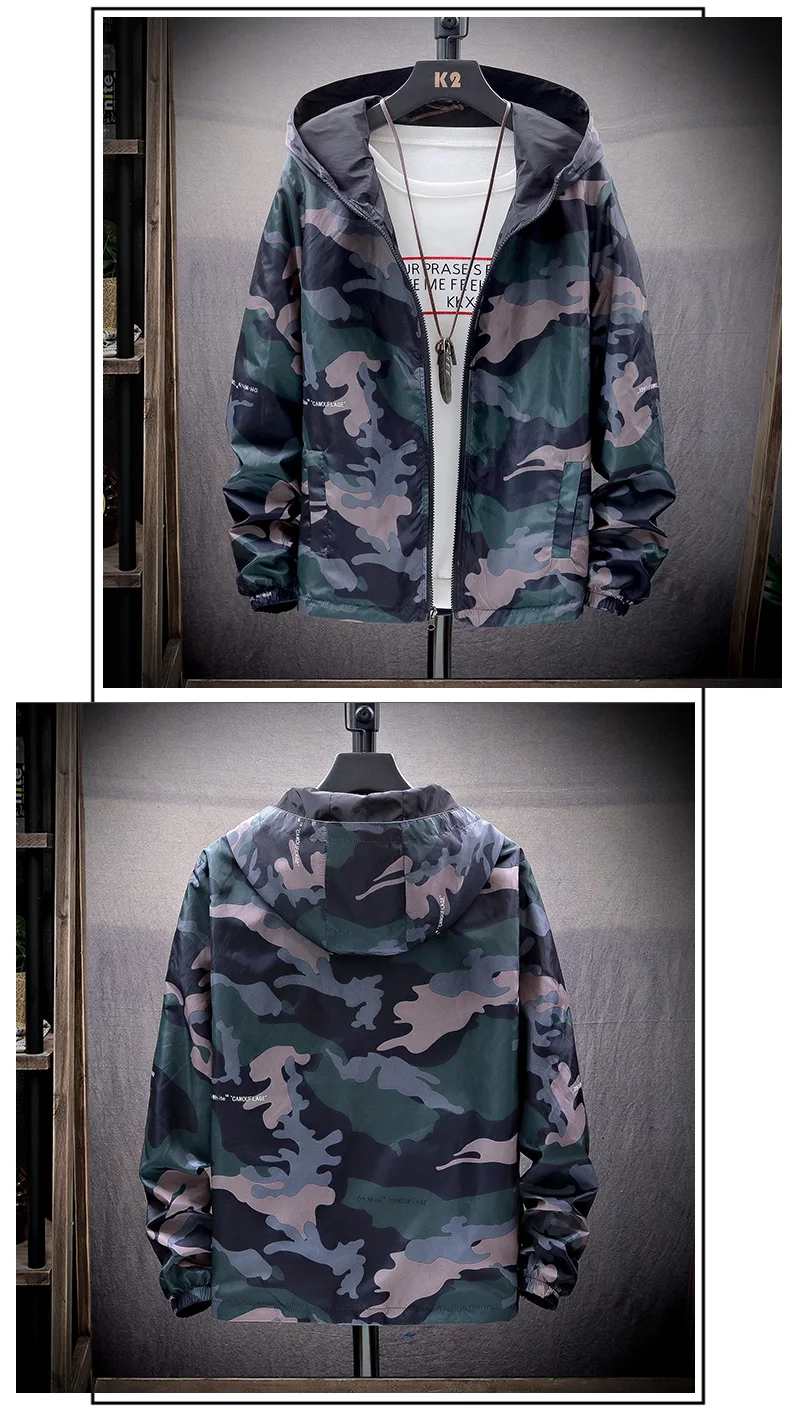 | New 2020 spring fashion Camouflage Jacket men Thin hodded Jackets Windbreakers Men's Clothing Clothes Plus Size |