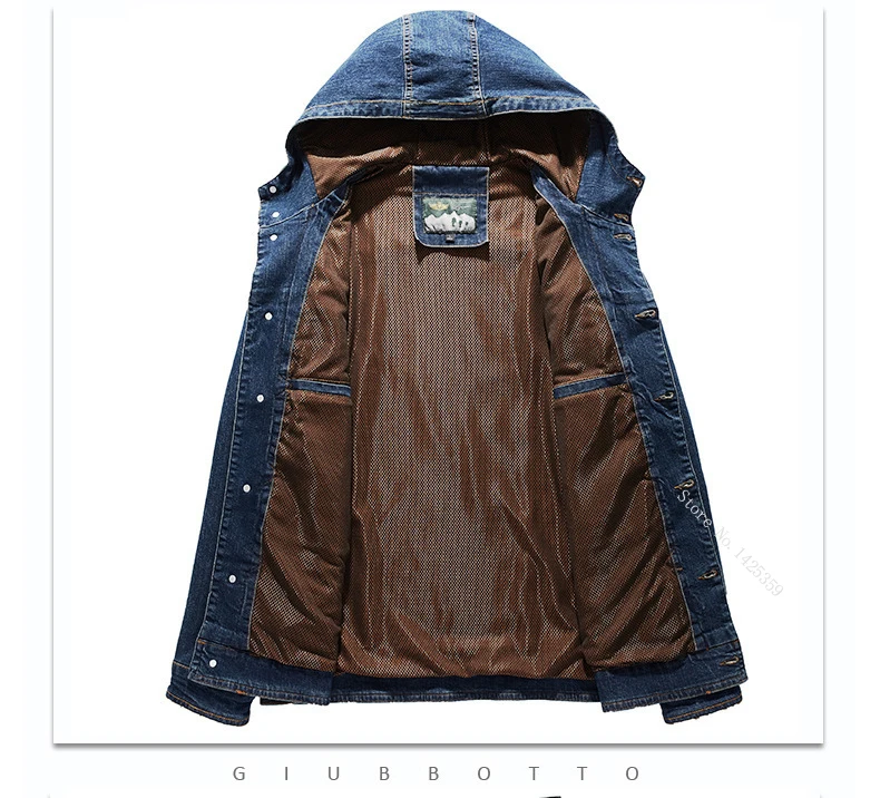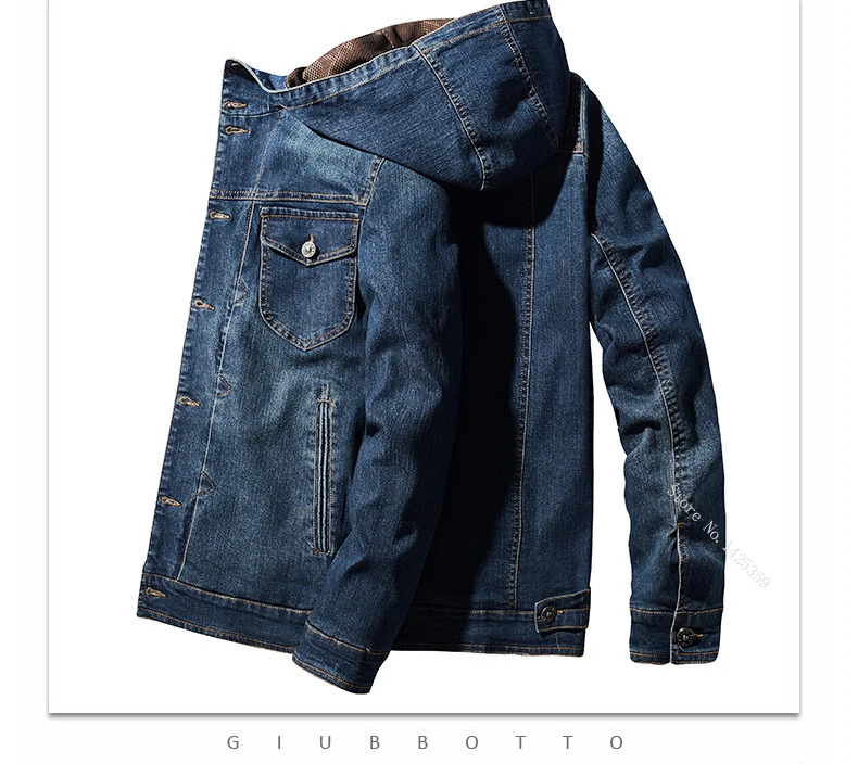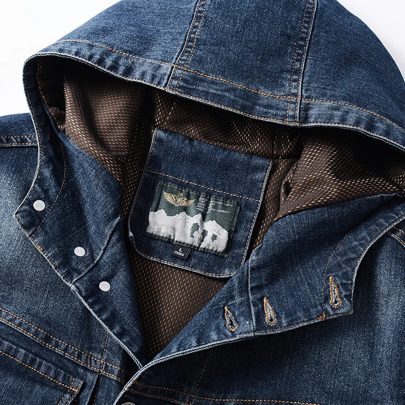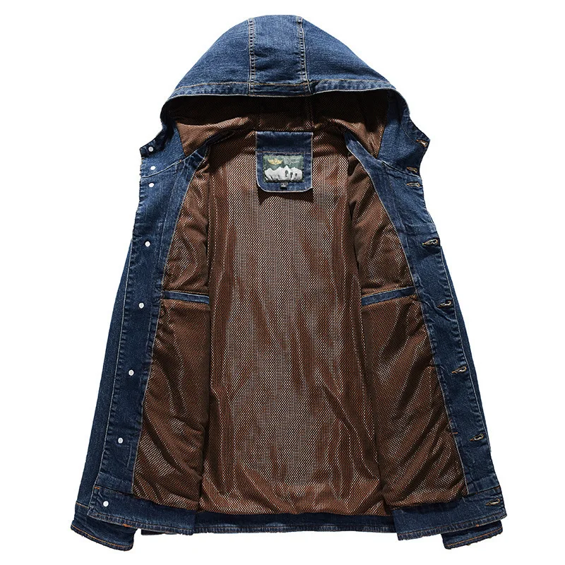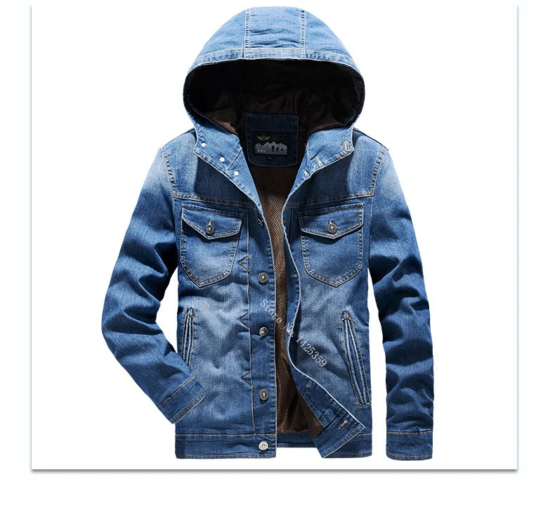 | Spring Autumn Jacket Men Coat Hooded Single Breasted Windbreaker Cotton Denim Jacket Solid Military Chaquetas Hombre Size M-4XL |