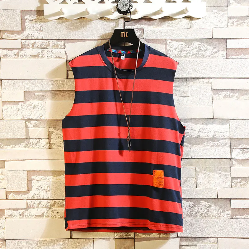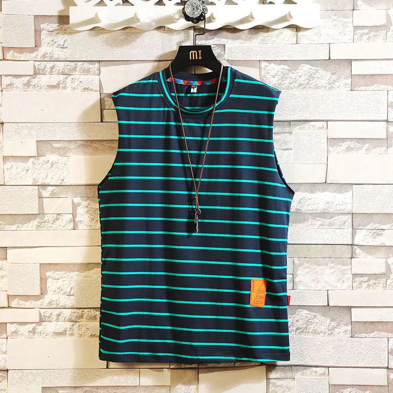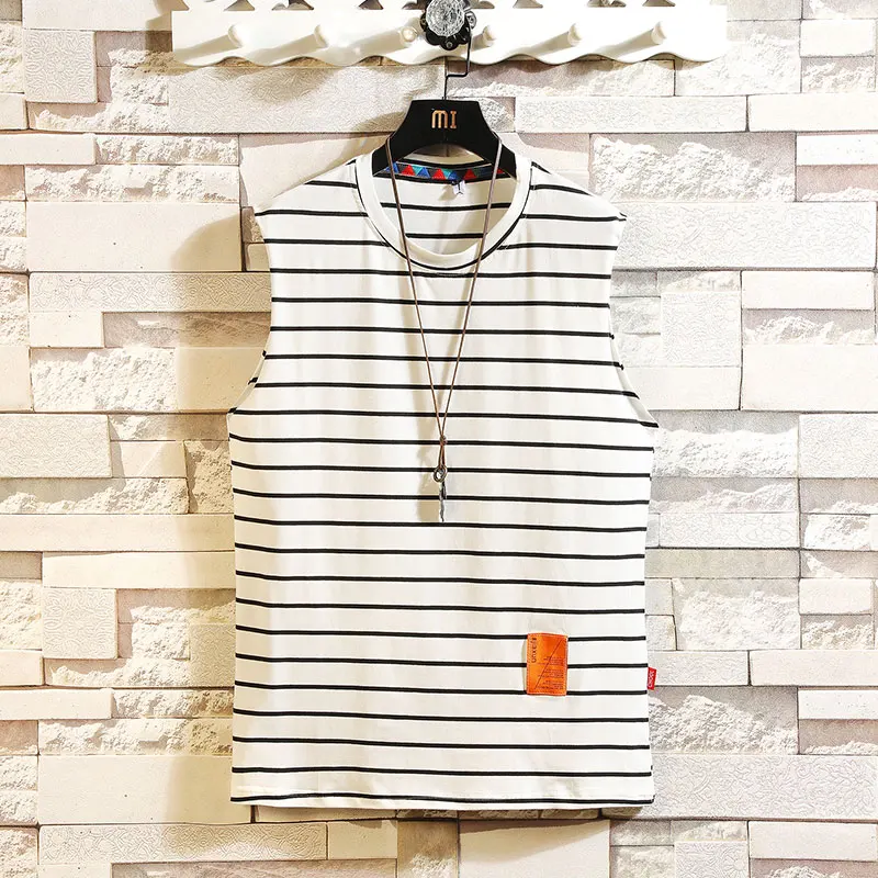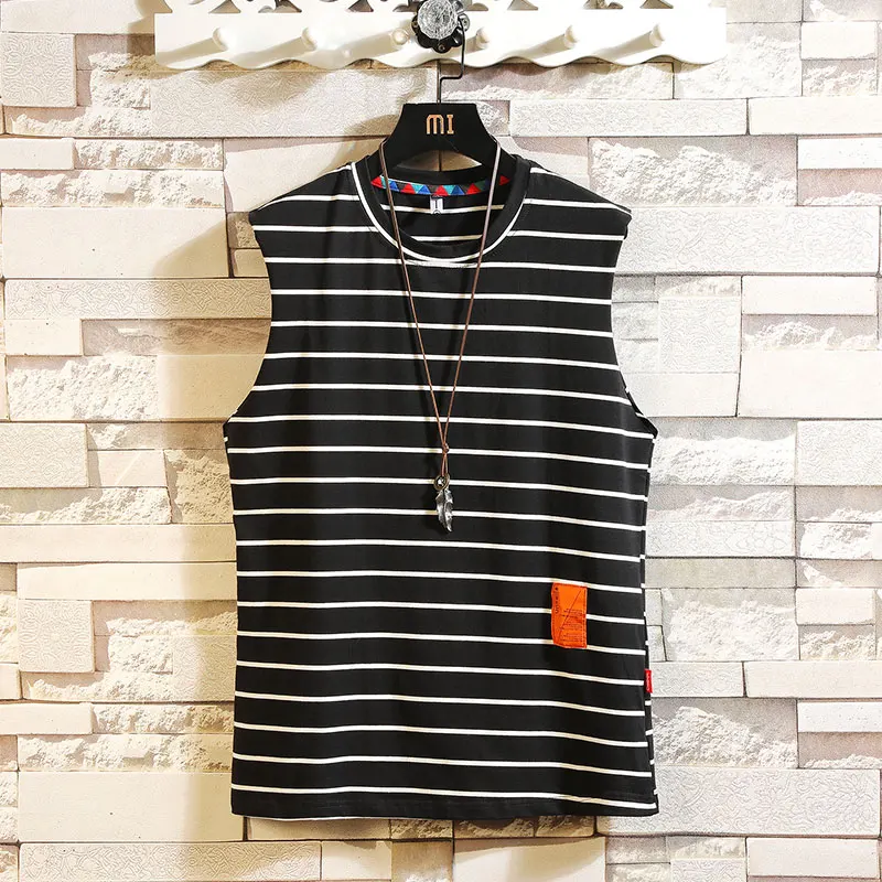 | BQODQO 2019 Men Striped Tank Top For Men Tee Summer Japanese Casual Tee Streetwear Comfortable Loose Sports Oversized |