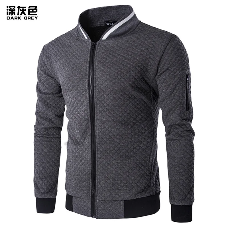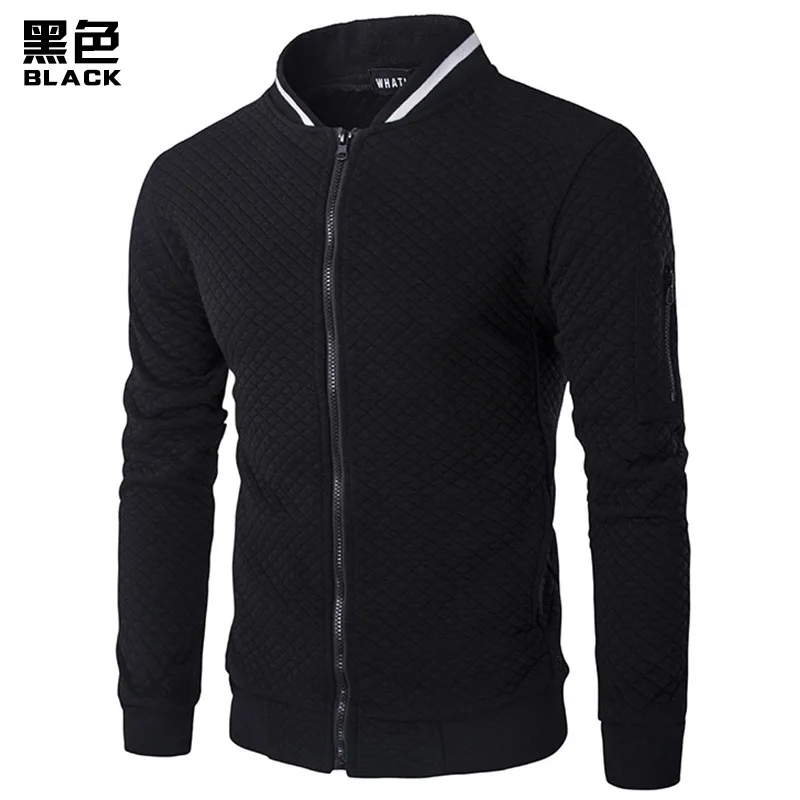 | Jacket Men New Style Diamond Contrast Color Zipper Stand Collar Rest Jacket Coat |