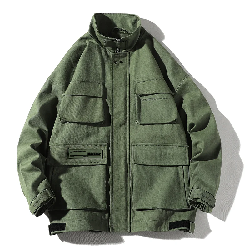 2020 Autumn Cargo Jackets Men Streetwear Solid Color Jacket Hip Hop Long Sleeve Coat Pocket Windbreaker Male Bomber Jackets Men