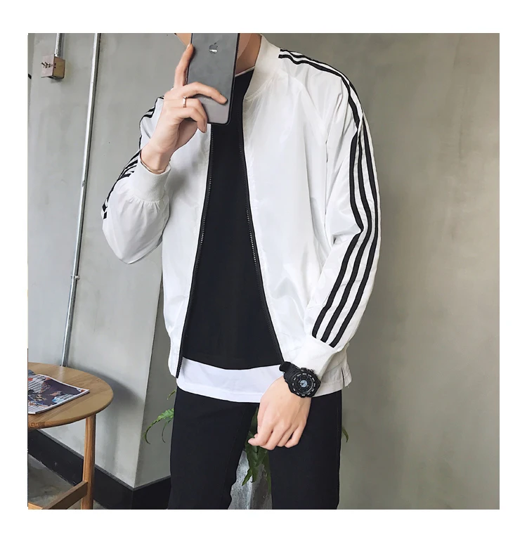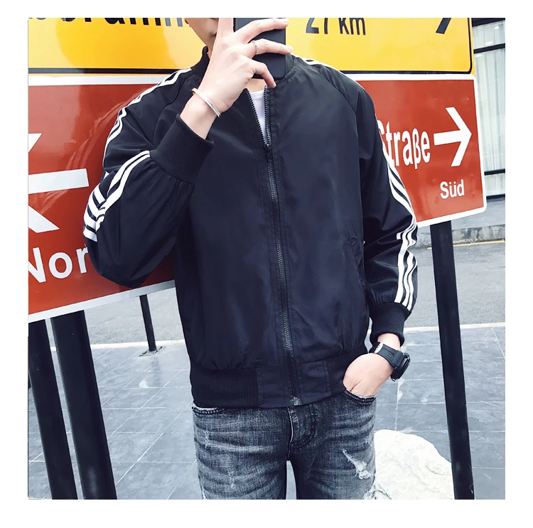 | Bomber Jacket Men Casual Mandarin Collar Fitted Jackets Lightweight Streetwear Baseball Coat Full Zip Windbreakers 2019 Autumn |