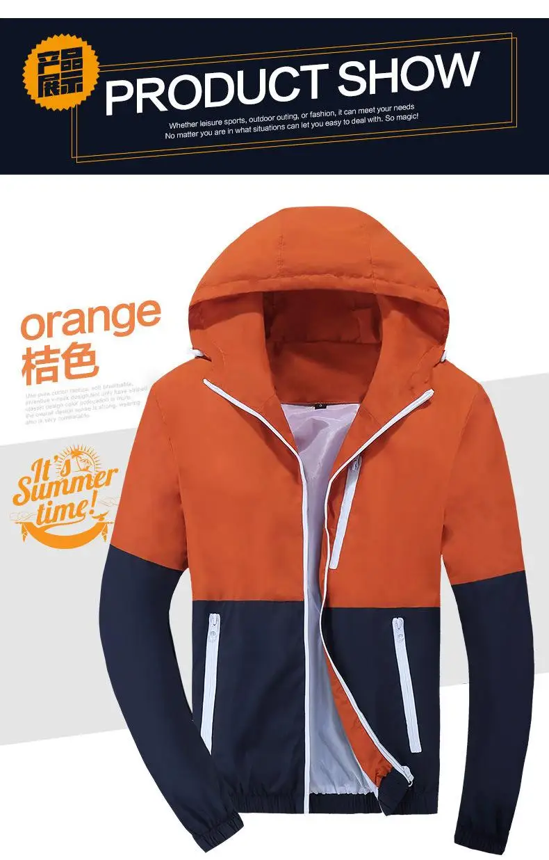 Jacket Men Windbreaker Spring Autumn Fashion Jacket Men's Hooded Casual Jackets Male Coat Thin Men Coat Outwear Couple Q6107