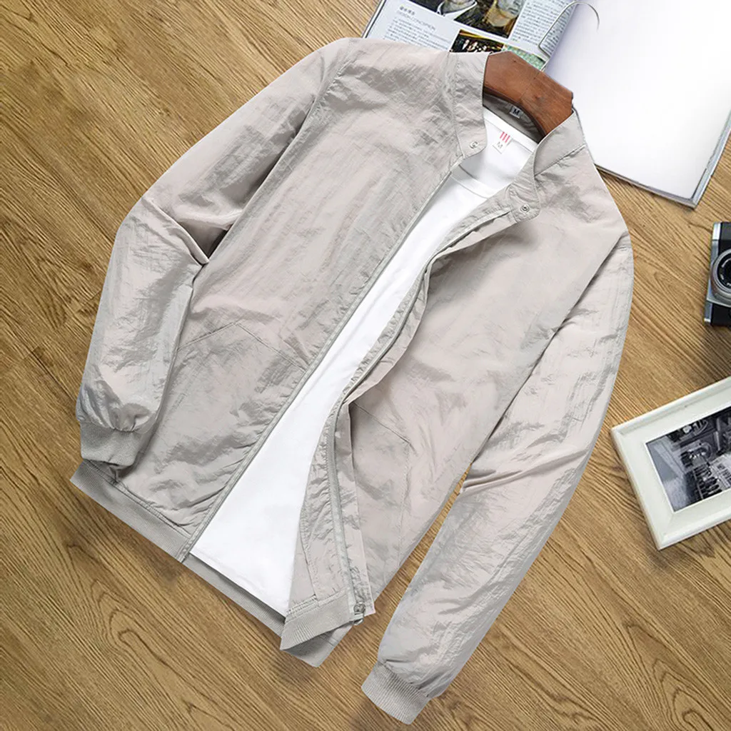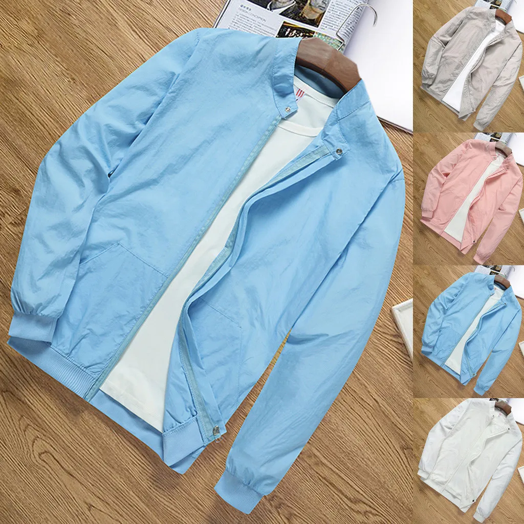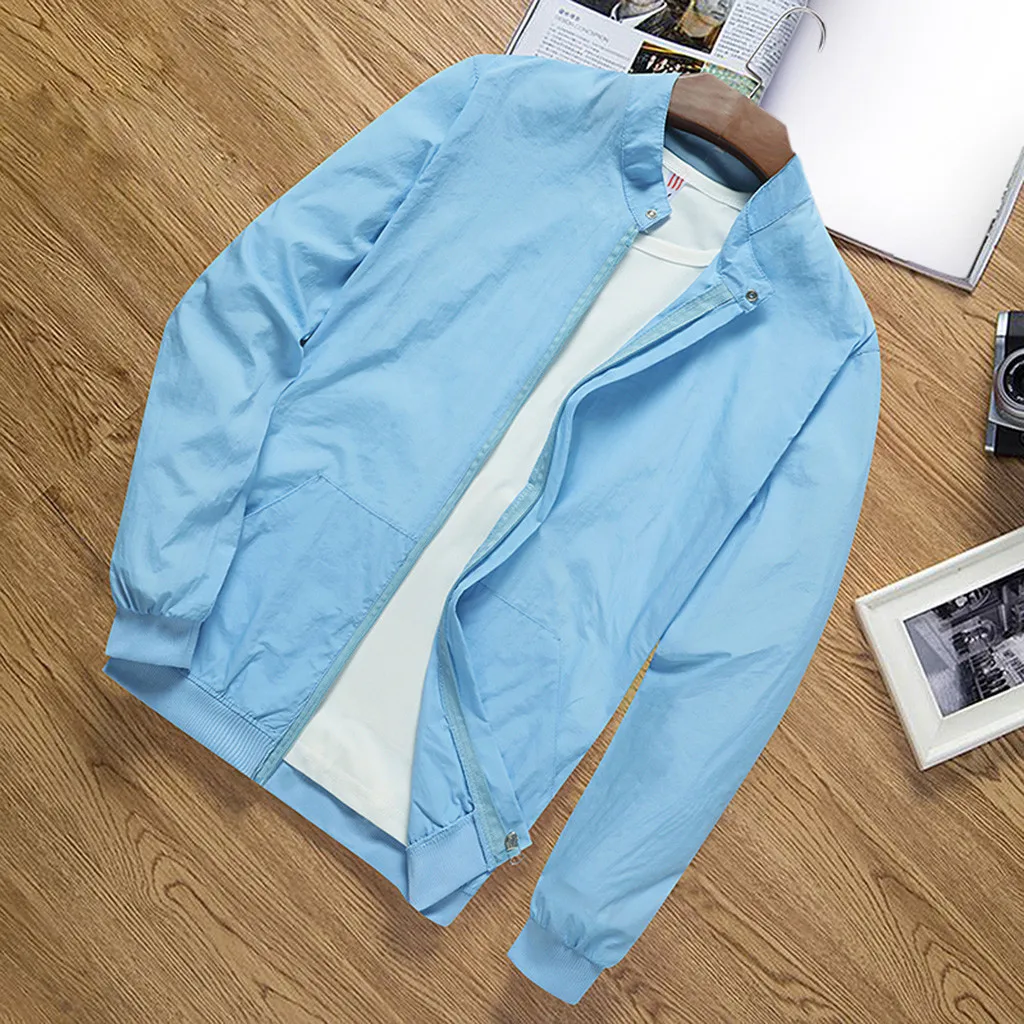 Fashion Men's Casual Solid Long Sleeve Jacket Stand Neck Coat