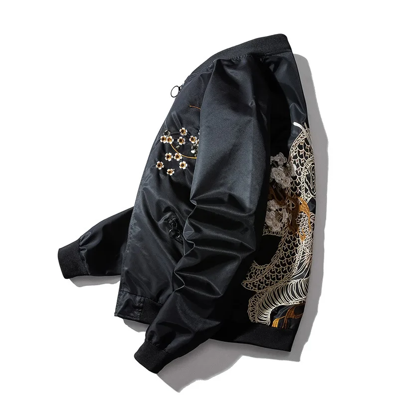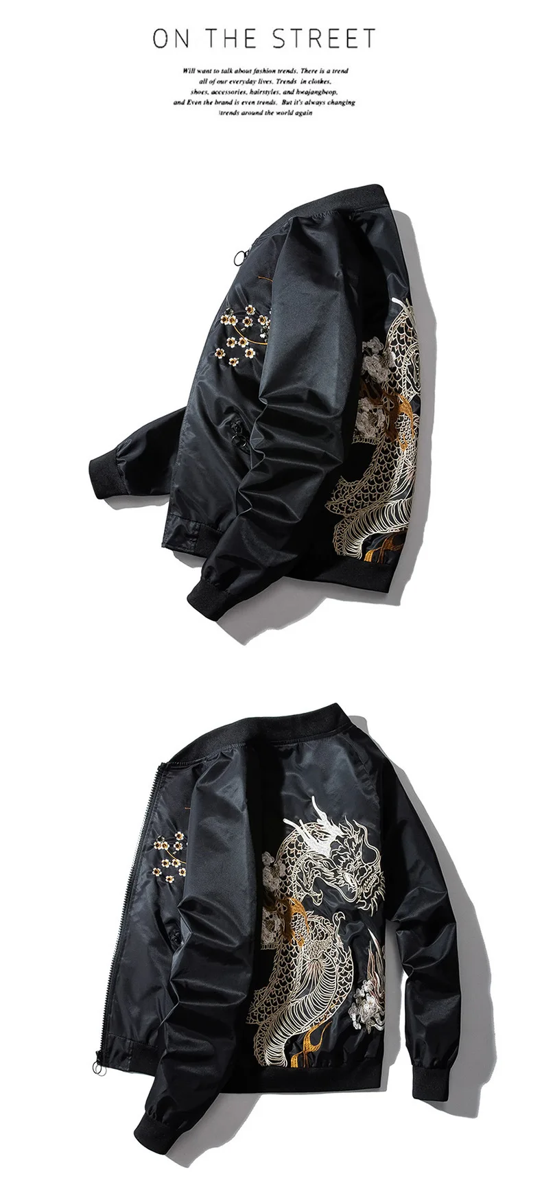 Men Baseball Jacket Embroidery Dragon Hip Hop Bomber Pilot Jacket Men Harajuku Japanese Retro Coat Fashion Streetwear Autumn
