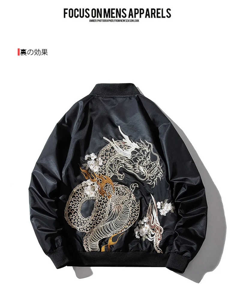 | Men Baseball Jacket Embroidery Dragon Hip Hop Bomber Pilot Jacket Men Harajuku Japanese Retro Coat Fashion Streetwear Autumn |
