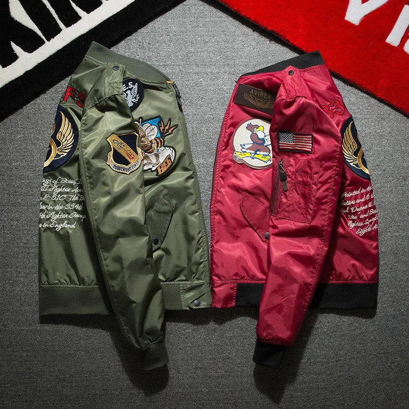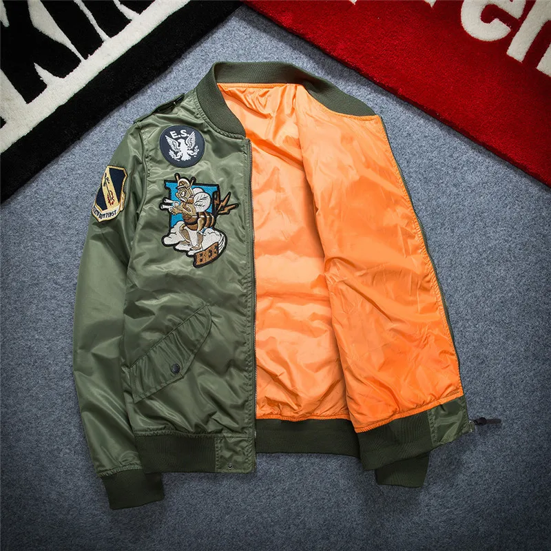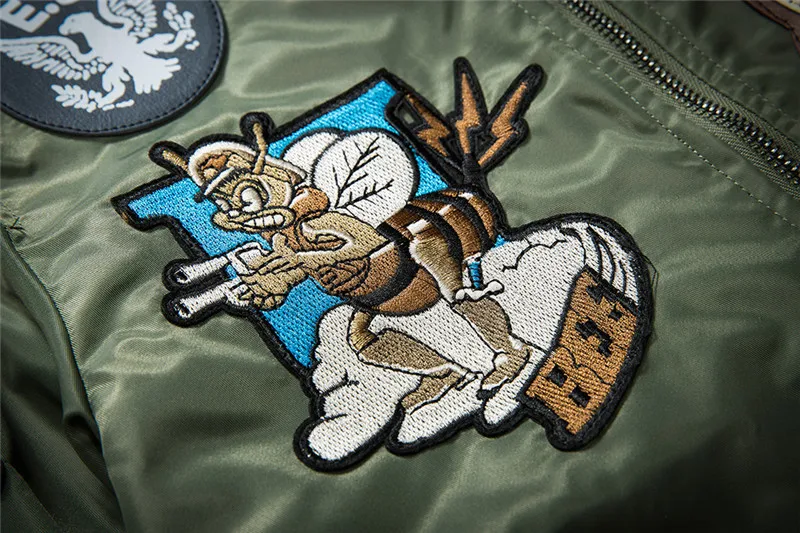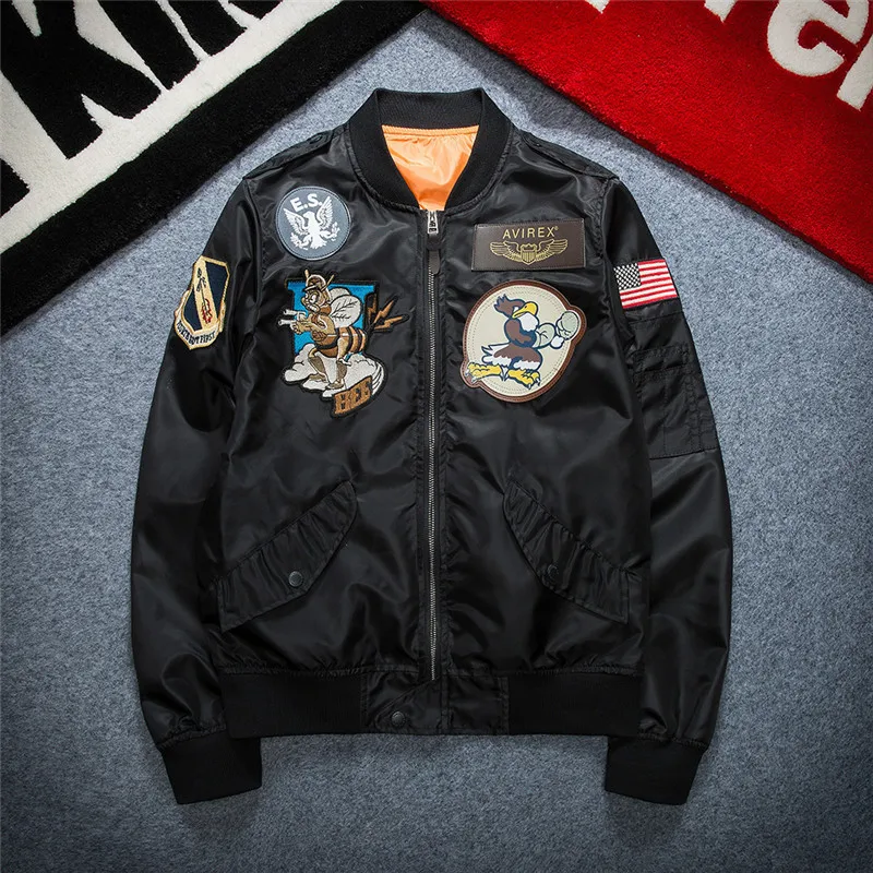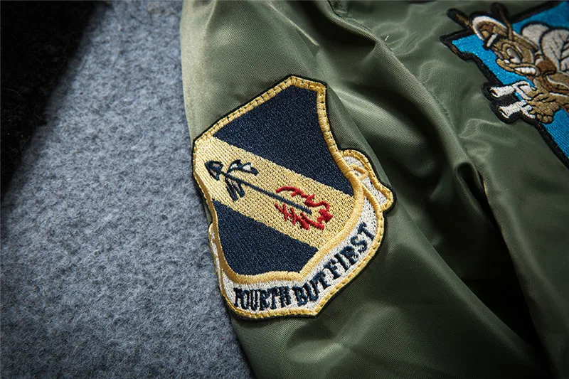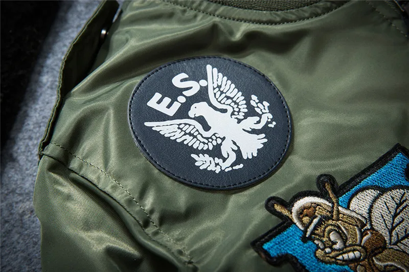 | Men Jacket Streetwear Hip Hop Pilot Army Military Baseball Thin Coat Jacket Man European Design Embroidery Cartoon Bomber Jacket |