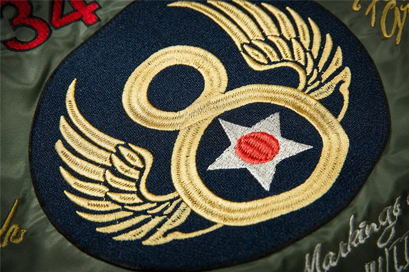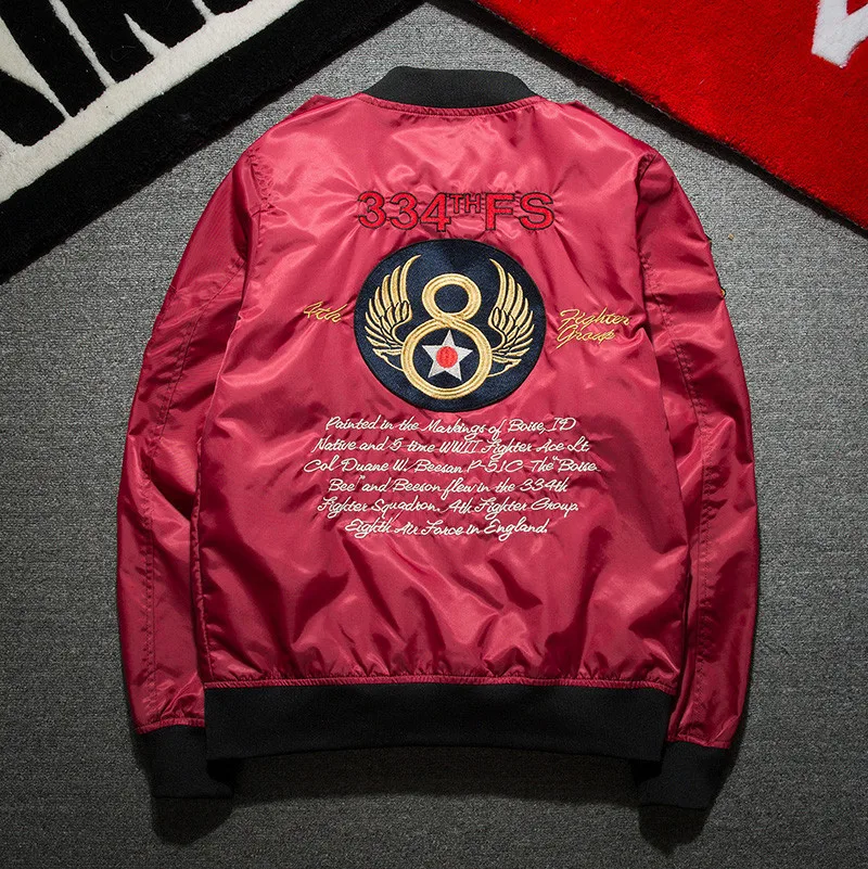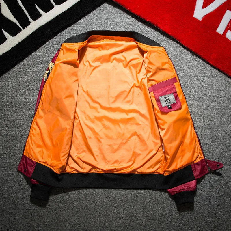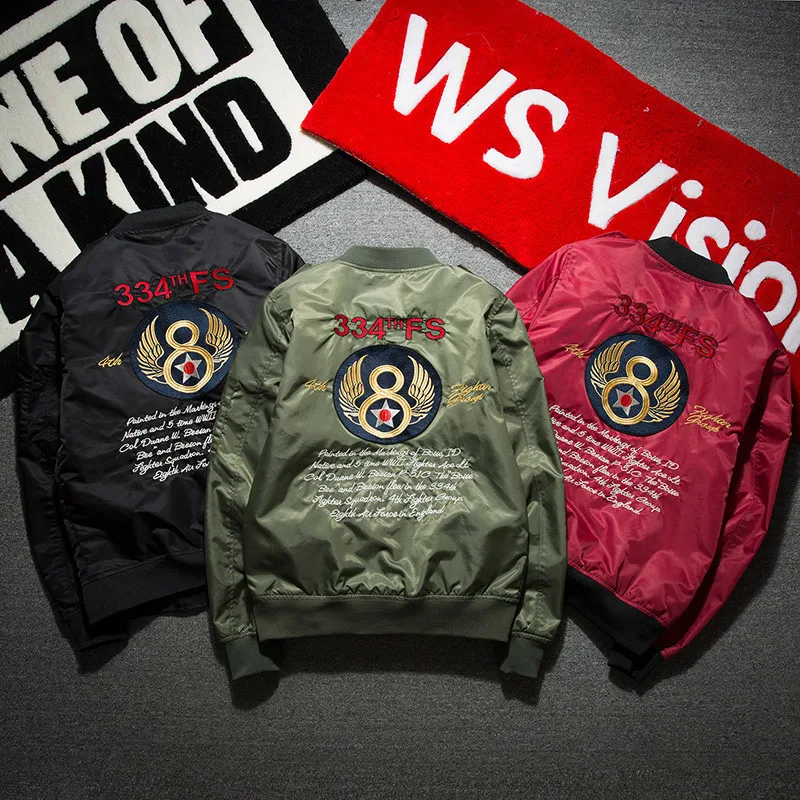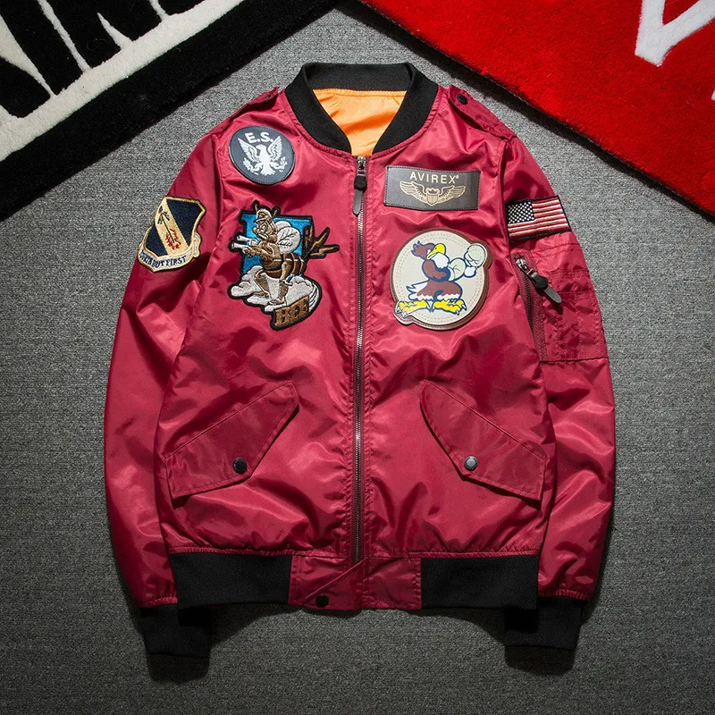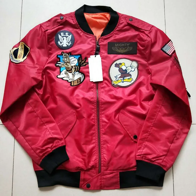 | Men Jacket Streetwear Hip Hop Pilot Army Military Baseball Thin Coat Jacket Man European Design Embroidery Cartoon Bomber Jacket |