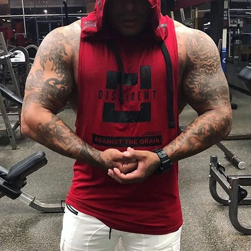 | Bodybuilding Stringer Tank Top with hooded Mens Gyms Clothing Fitness Mens Sleeveless Vests Cotton Singlets Muscle Sports vest |