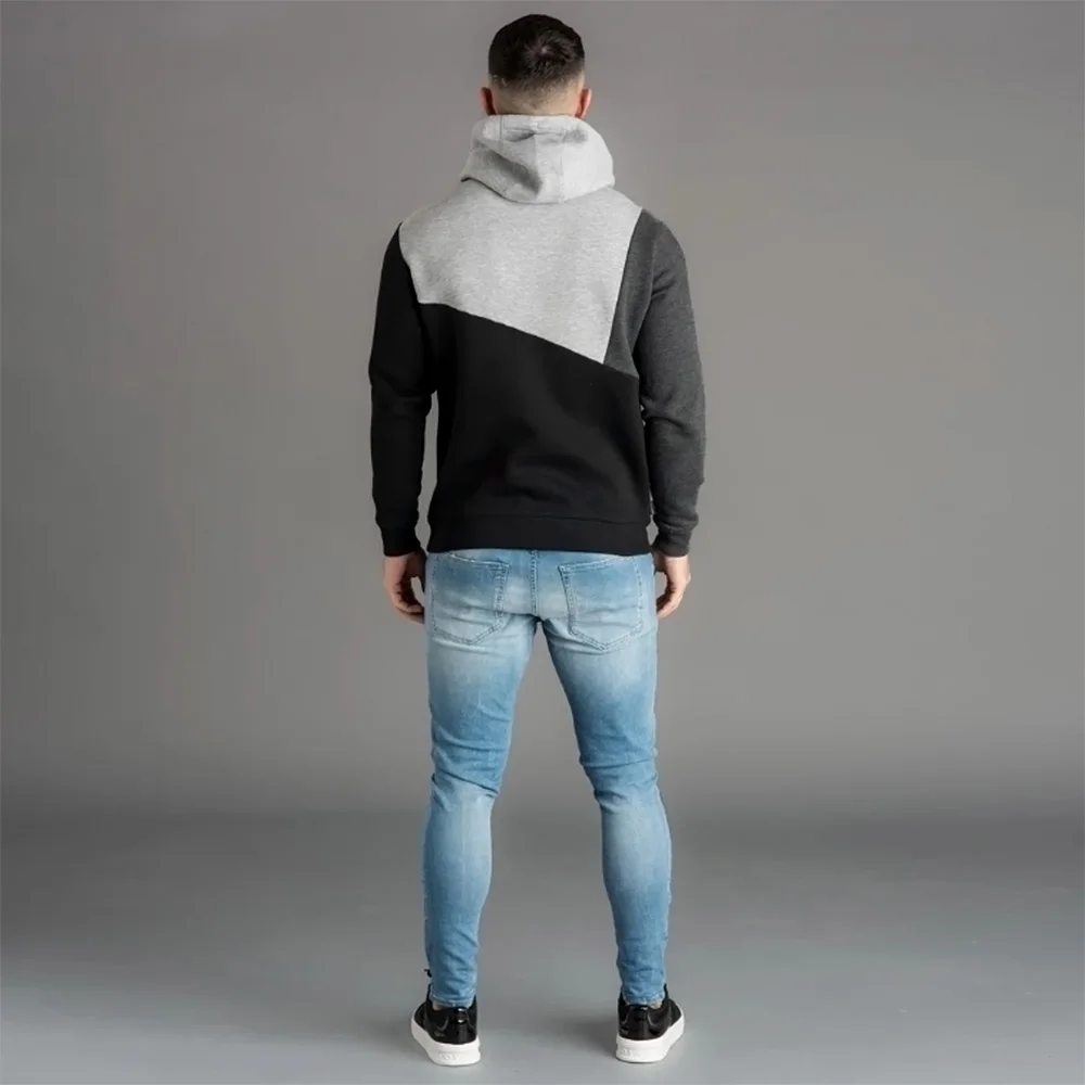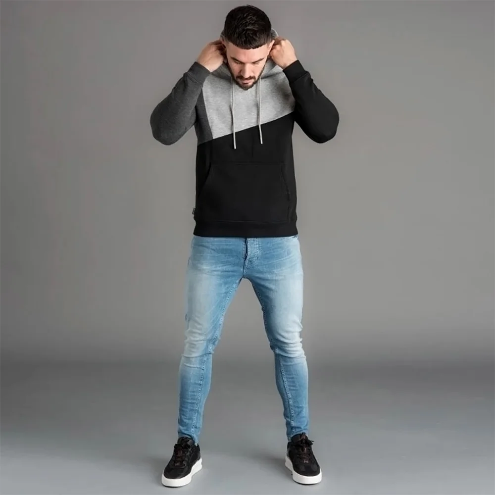 Mens Hoodies Sweatshirt 2019 Streetwear Patchwork Hoody Pullover Black White Hoodie Men Winter Fleece Sweatshirts Clothing