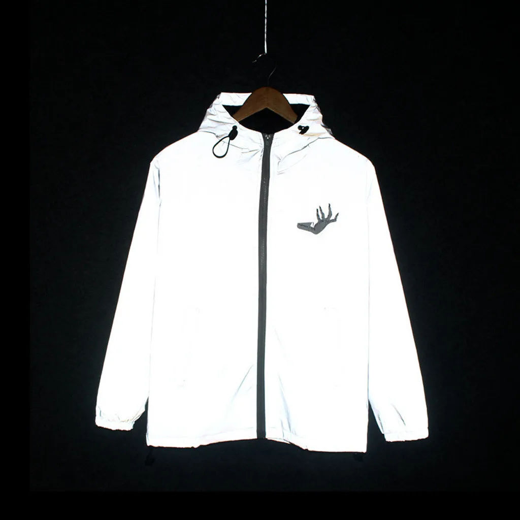 Reflective Jacket Men/women Harajuku Windbreaker Jackets Hooded Streetwear Coat