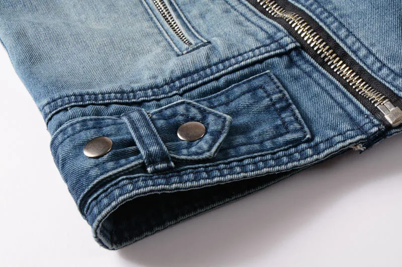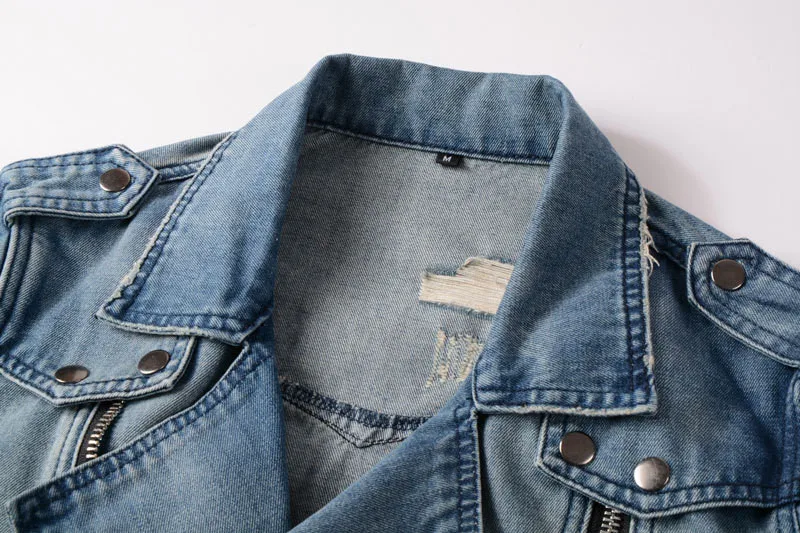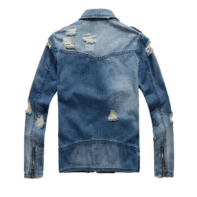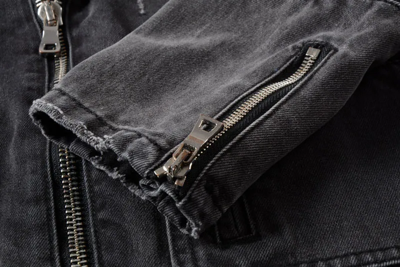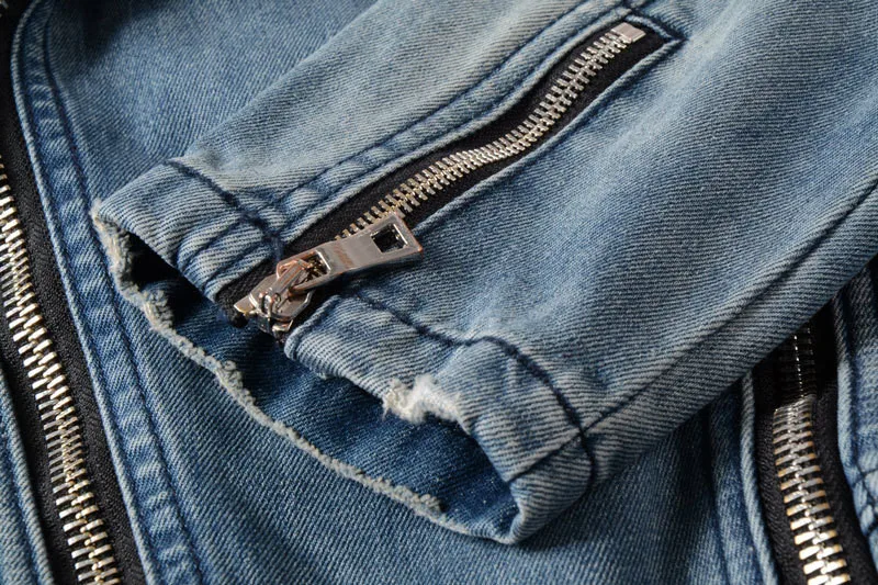 Idopy New Fashion Hi Street Mens Ripped Denim Jackets With Multi Zippers Streetwear Distressed Motorcycle Biker Jeans Jacket