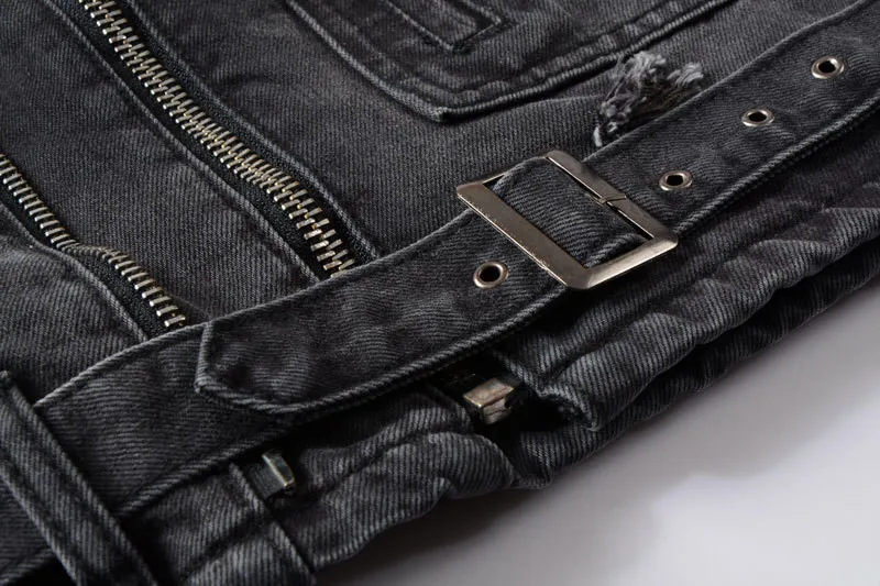 | Idopy New Fashion Hi Street Mens Ripped Denim Jackets With Multi Zippers Streetwear Distressed Motorcycle Biker Jeans Jacket |