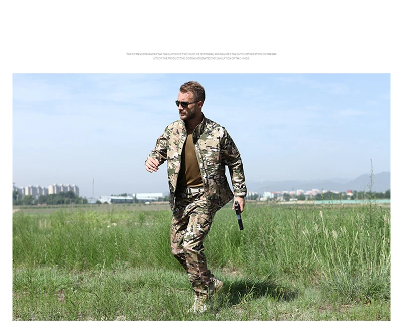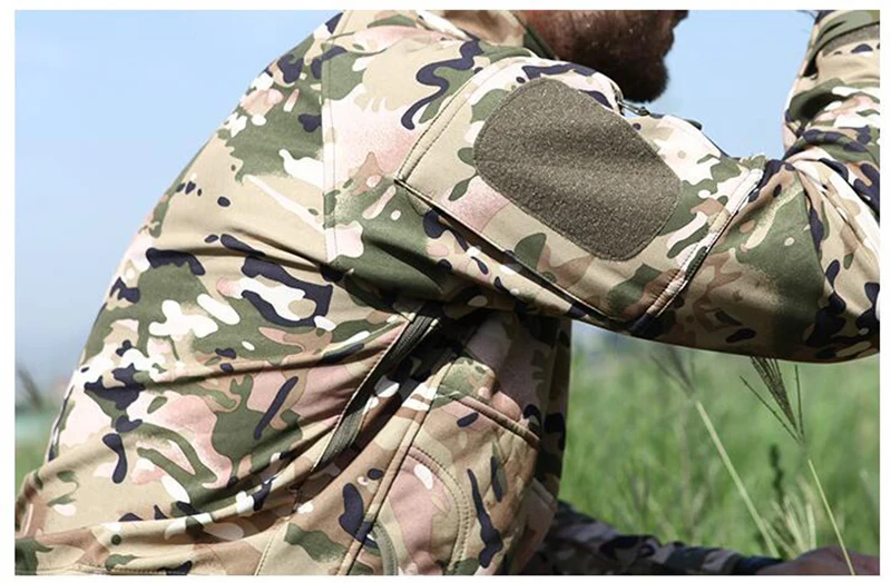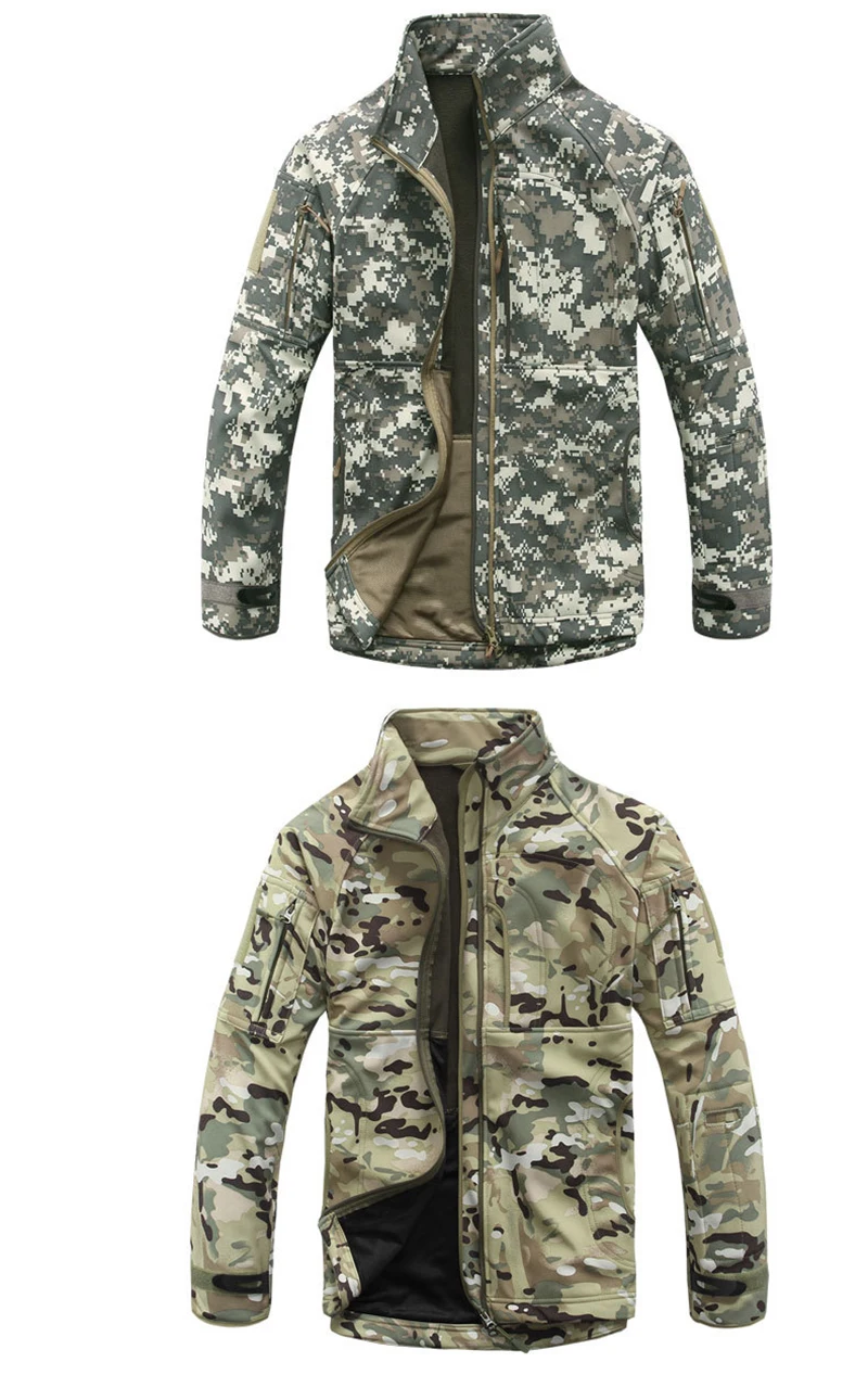 | Men's Army Camouflage Military Waterproof Tactical Jacket Hunt Sharkskin Softshell Standcollar US Army Breathable Coat |