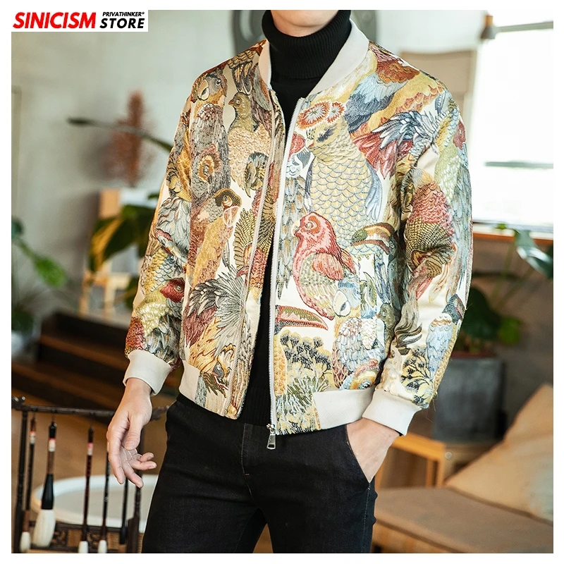 | Sinicism Store Men Loose Chinese Style Jacket Men Embroidery Streetwear Top 2020 Male Autumn Spring Casual Zipper Coats Oversize |