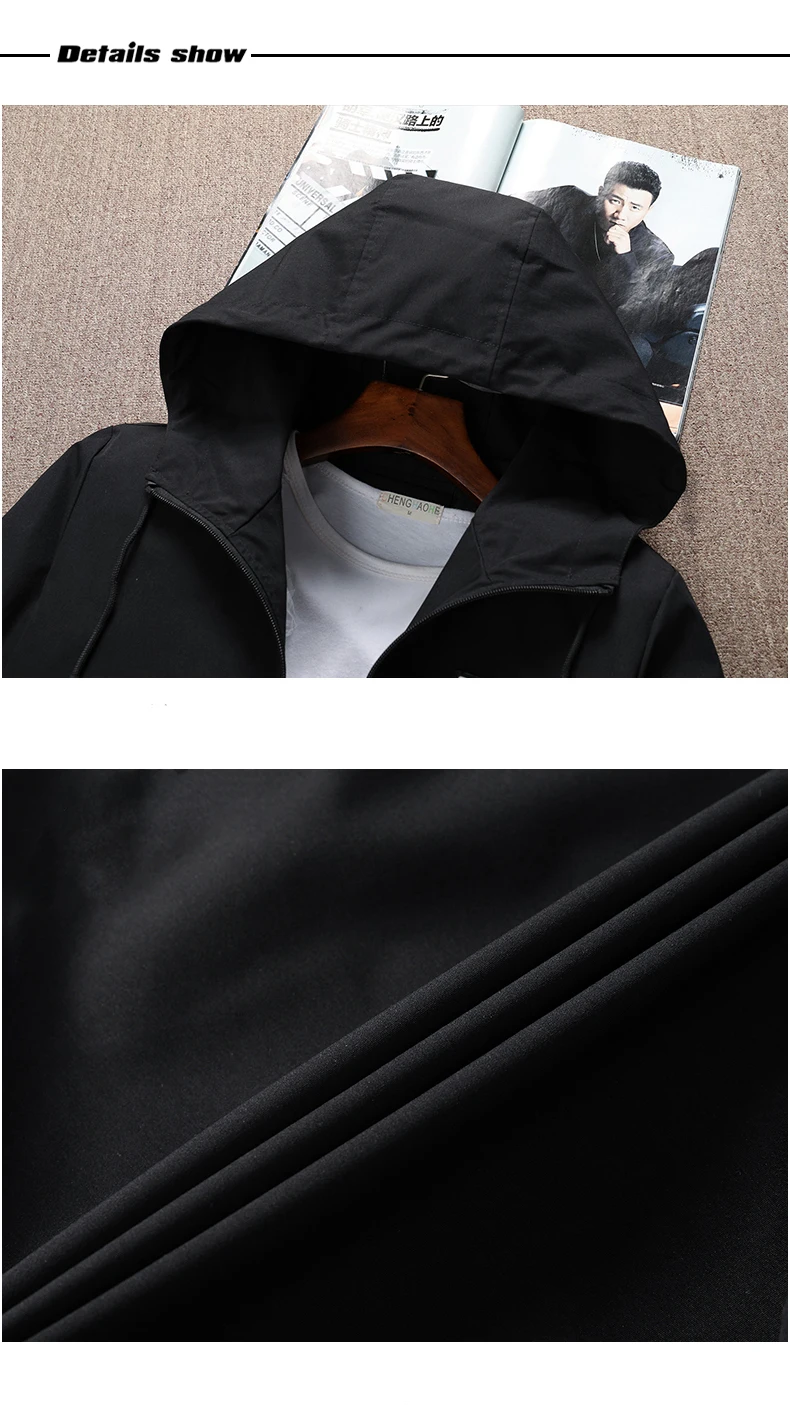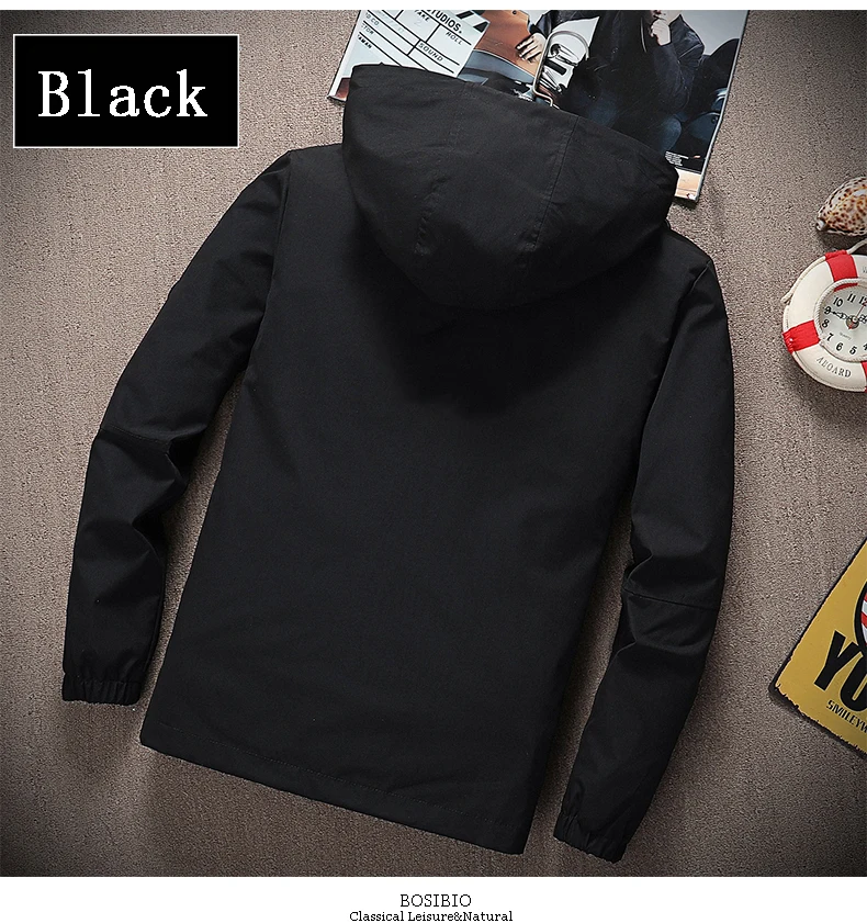 BOSIBIO Summer Autumn Men Casual Jackets Solid Slim Fit Thin Hooded Jacket Male Fashion Zipper Coat High Quality Size M-4XL 8125