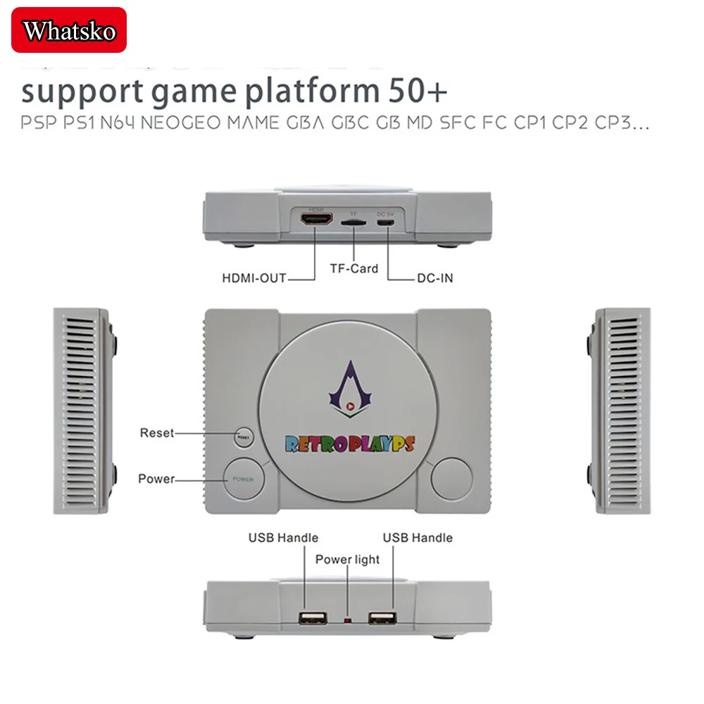 Raspberry Pi RETRO PLAY HD Home TV Game Console* The machine contains 20+ large emulators, perfect to run N64, PS1, *PSP, MAME, GBA, SFC, NES, GB and other emulators* System:Retropi* CPU QUAD: 1.6=GHZ* RAM: 1GB DDR* Built-in 7000+ classic games* Product standard: host x1, handle x2, HDMI cable x1, manual x1, USB charging cable x1.