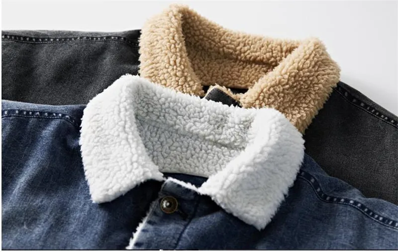 DeniMJacket Men Winter Streetwear Fashion Turn Down Fur Collar Windbreaker Cowboy Jackets Men's Outwear Hip Hop Jeans Coat