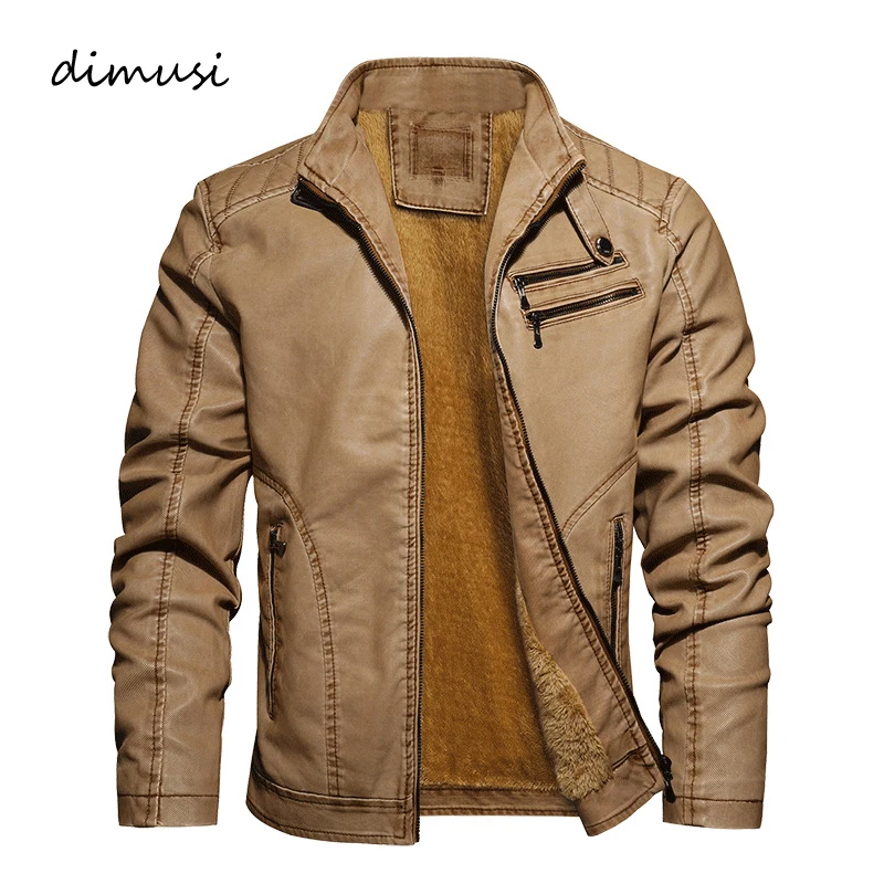 | DIMUSI Winter Men's PU Jacket Leather Coats Mens Warm Slim Fit Faux Leather Motorcycle Jackets Male Biker Coats Brand Clothing |