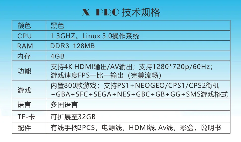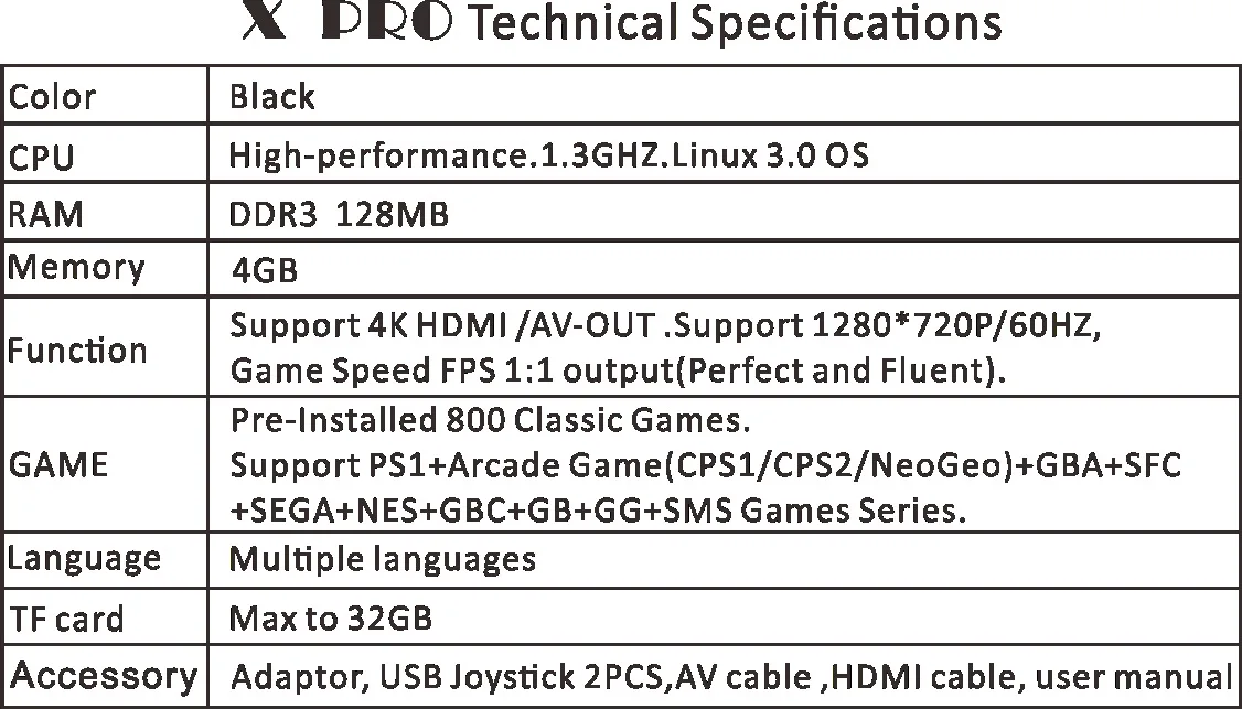 | 64 Bit 4K Hdmi Output Retro Video Game Console With 800 Classic Family Video Games Retro Game Console 4G Memory TV X PRO |