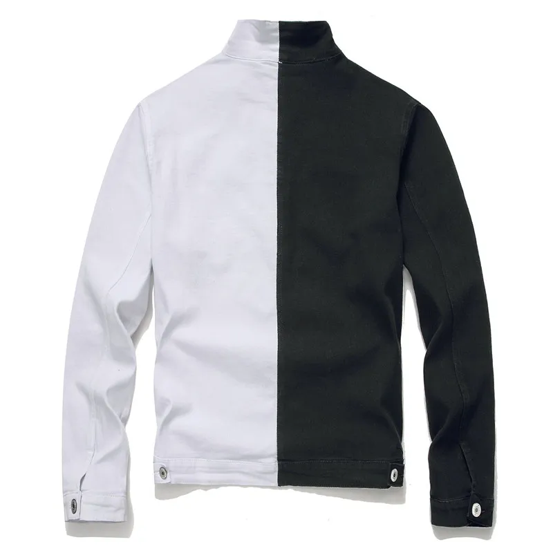 Men Streetwear Black white Two-tone Patchwork Slim Fit Jean Jackets motorcycle man Hip hop Cotton Casual Denim Jackets coats