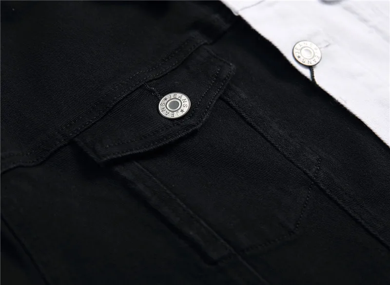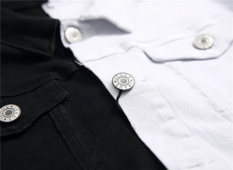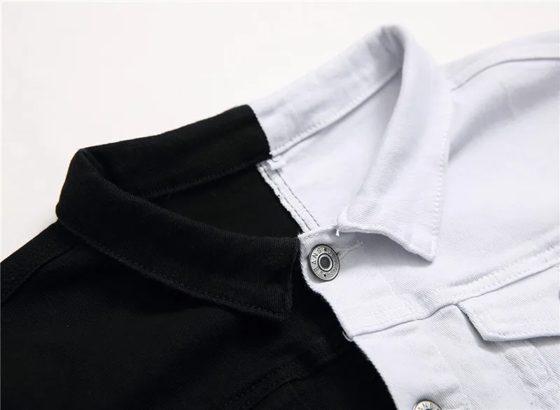 | Men Streetwear Black white Two-tone Patchwork Slim Fit Jean Jackets motorcycle man Hip hop Cotton Casual Denim Jackets coats |