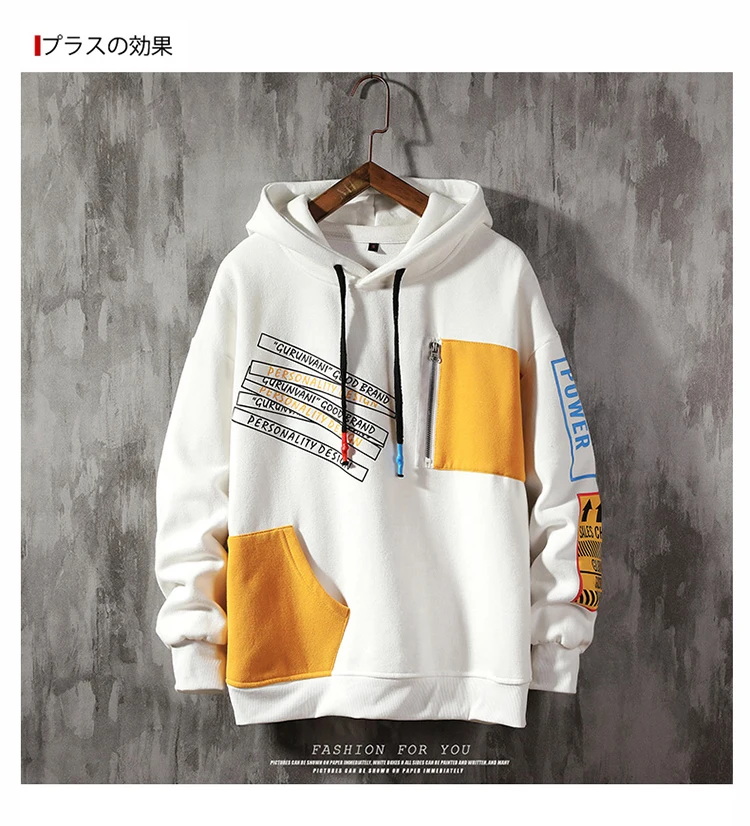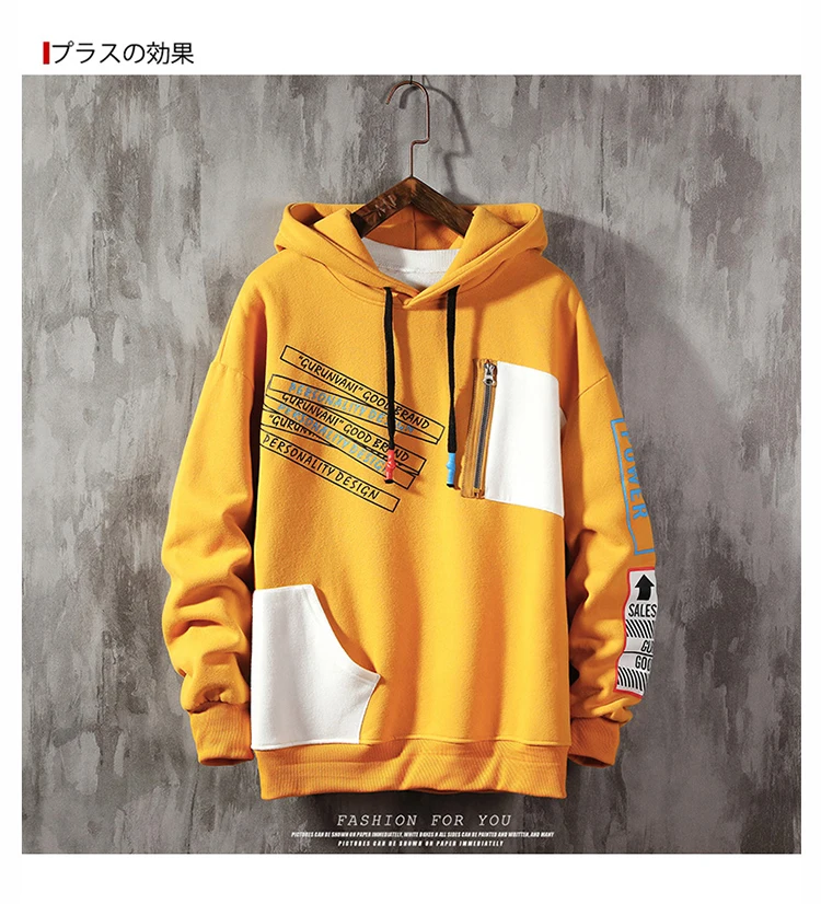 SingleRoad Men's Hoodies Men 2020 Spring Harajuku Japanese Streetwear Patchwork Casual Sweatshirt Male Hip Hop Yellow Hoodie Men