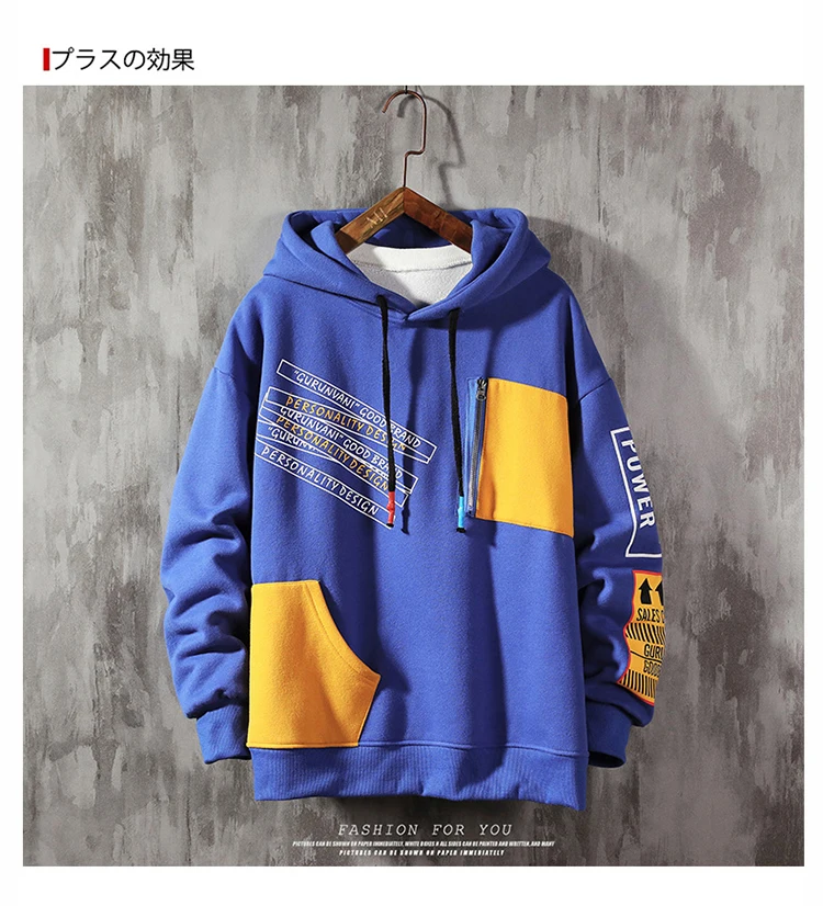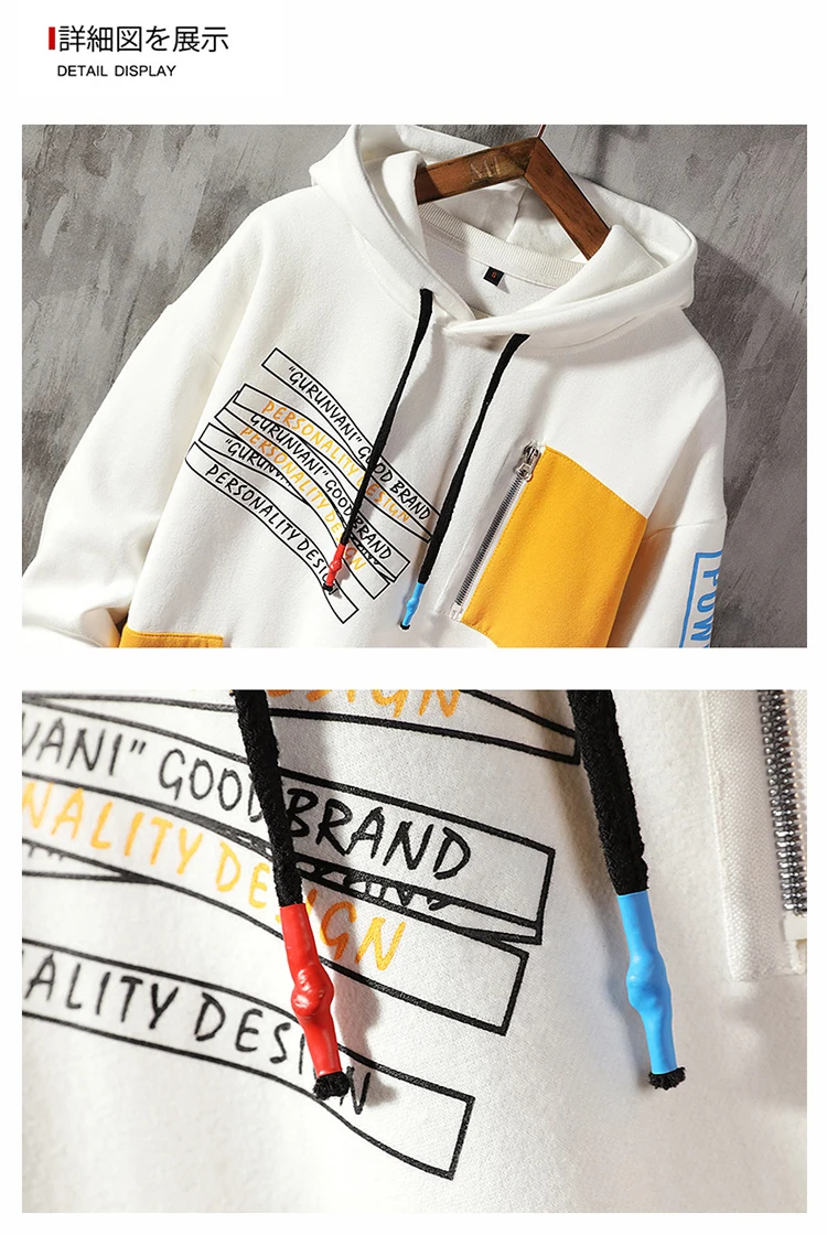 | 2019 Autumn Large Size patchwork Hoodie Men color block sweatshirt Brand Trend Contrast Color Stitching Long Sleeve Men |