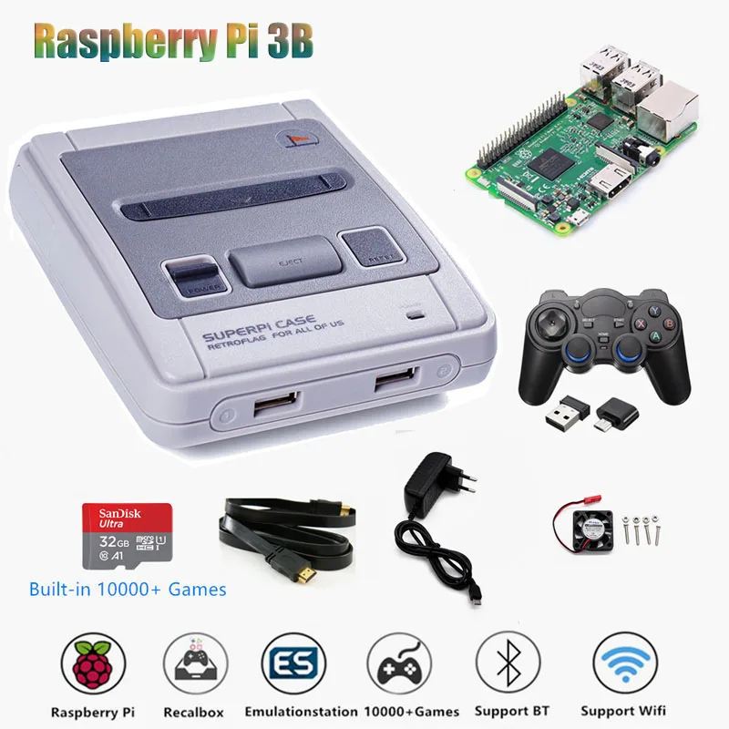 This Retroflag gaming system lets you relive your childhood memories with your family. Play your favorite classics like Mario, Crash Bandicoot, Sonic, Street Fighter and so many others with up to 4 players.It is powered by the powerful raspberry pi 3BQuad Core 1.2GHz Broadcom and 1GB RAM, you can play the PS/N64 most games, just like you used to play them.With wireless LAN and Bluetooth, supports you add games by yourself and wireless controller.Full size HDMI,4 Pole stereo output and composite video port.Compatible with different sizes of TV, PCWith 4 USB ports,up to 4 players.