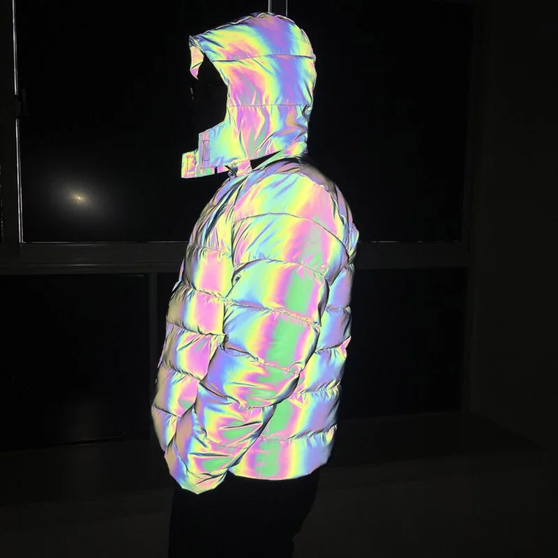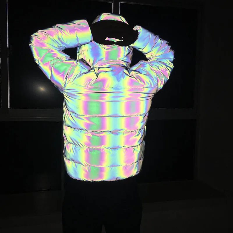 | KIOVNO Winter Men's Night Safe Snow Jackets Coats Thicken Warm Light Reflective Overcoat Jackets Male Clothing |